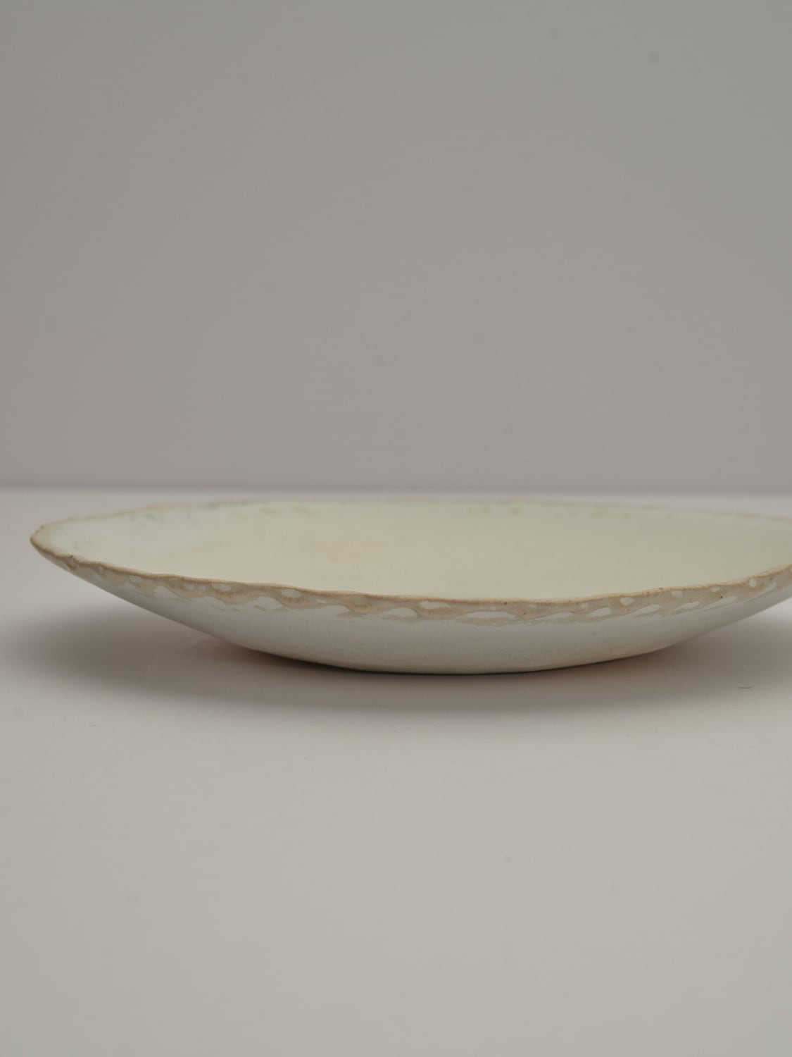釉薬、形どちらもとても柔らかい表現をされる五嶋穂波さんの作品。 素材 : 陶土 サイズ : 約 Φ21cm × H 3 cm 発送が年内は12月29日までです(土日除外)。その後は1月11日以降の発送となります。ご注意ください。また、サイズは若干の誤差が生じます。モニターの環境により実際の色と異なる見え方になる場合があります。ご理解の上ご購入ください。