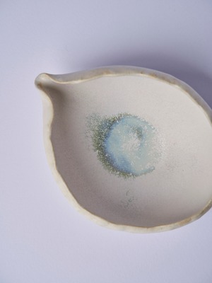 釉薬、形どちらもとても柔らかい表現をされる五嶋穂波さんの作品。片口は茶海とも言われ、中国茶の道具にも使うことができます。内側に溜まった釉薬が美しい作品です。 素材 : 陶土 サイズ : 約 W15cm × 11cm × H 4.5cm 容量:150cc 発送が年内は12月29日までです(土日除外)。その後は1月11日以降の発送となります。ご注意ください。また、サイズは若干の誤差が生じます。モニターの環境により実際の色と異なる見え方になる場合があります。ご理解の上ご購入ください。