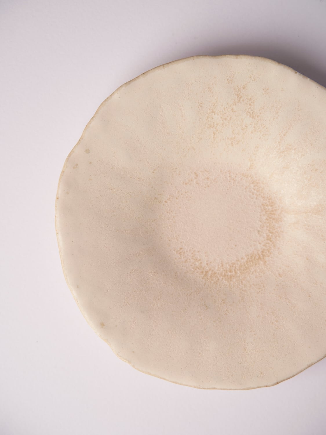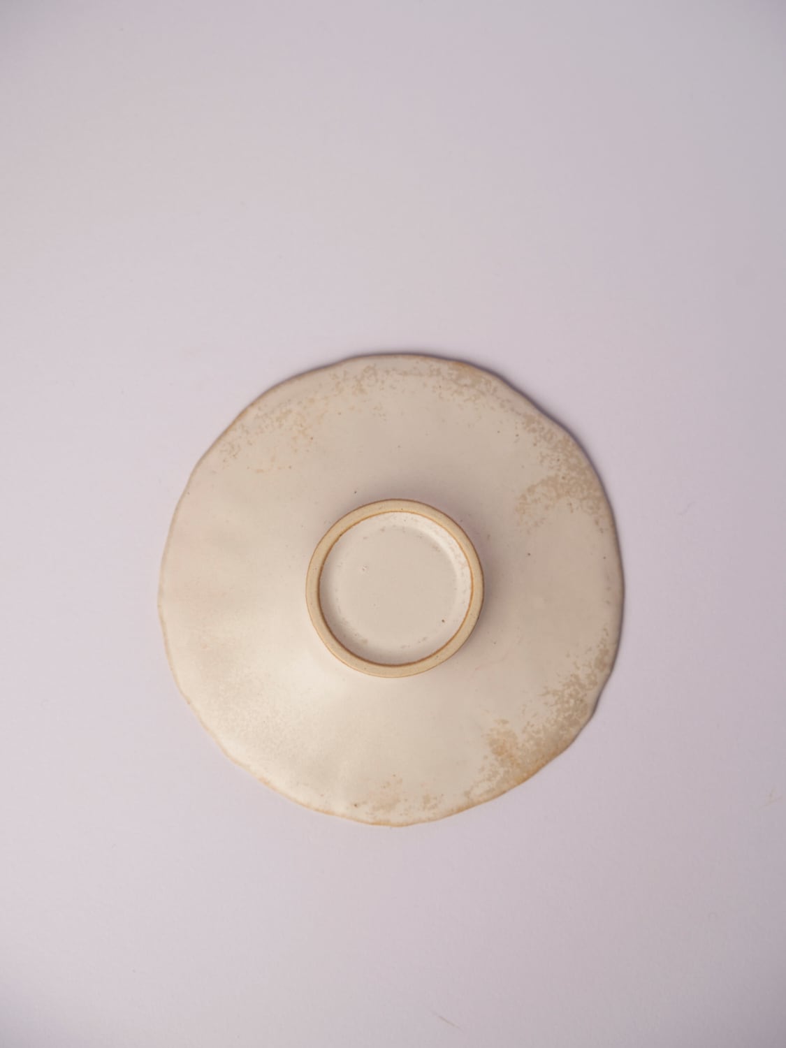 釉薬、形どちらもとても柔らかい表現をされる五嶋穂波さんの作品。花が開花しているような形状と優しい色が美しい作品です。 素材 : 陶土 サイズ : 約 Φ17cm × H 2.5 cm 容量 : 120cc 発送が年内は12月29日までです(土日除外)。その後は1月11日以降の発送となります。ご注意ください。また、サイズは若干の誤差が生じます。モニターの環境により実際の色と異なる見え方になる場合があります。ご理解の上ご購入ください。