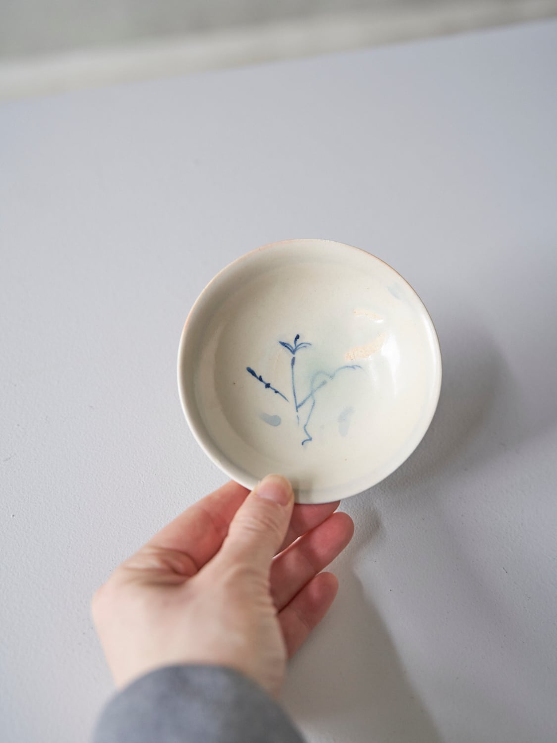 秋田菫による磁器作品。青みや帯びた透明釉薬はガラス質で美しい。有田焼初期のような柔らかく、素朴な雰囲気があります。染付により描かれた植物は、彼女の庭に育ったものです。 素材 : 磁器 サイズ : 約 Φ 9.5cm × H 3cm サイズは若干の誤差が生じます。またモニターの環境により実際の色と異なる見え方になる場合があります。ご理解の上ご購入ください。