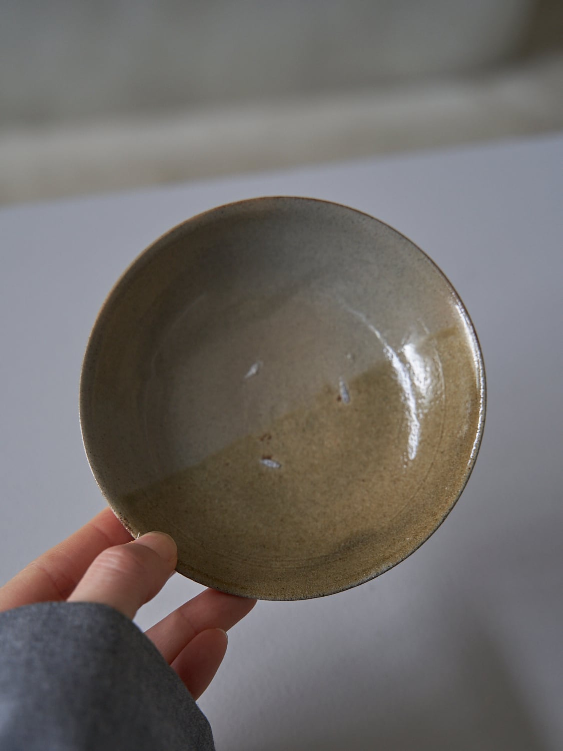 秋田菫による佐賀県唐津の土を使った陶器作品。古唐津のような素朴さをまとった佇まいのカップ。優しい形と色は「用の美」を感じさせてくれる。