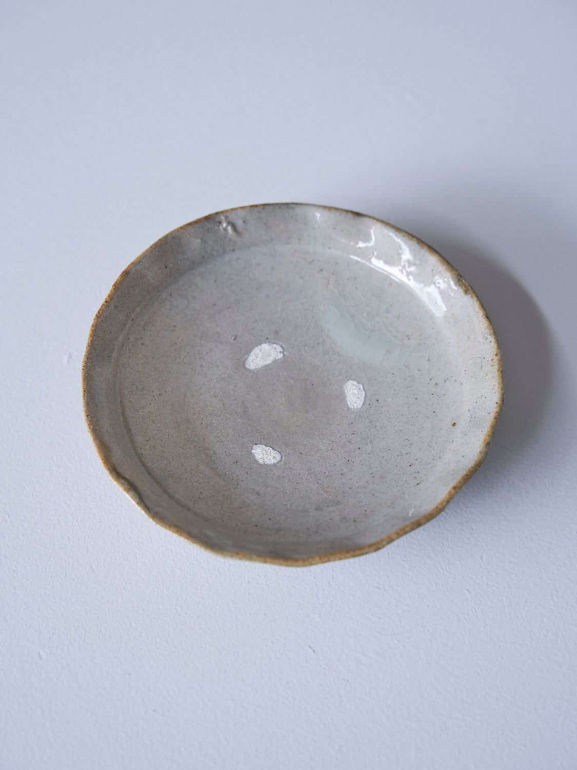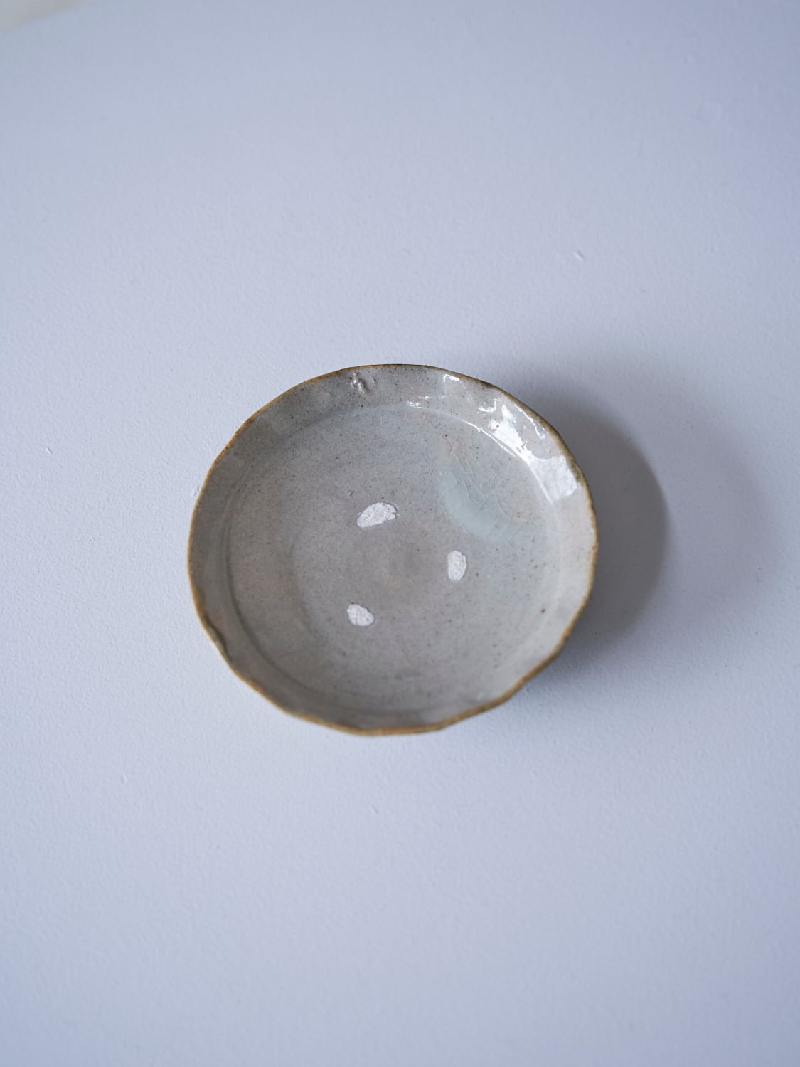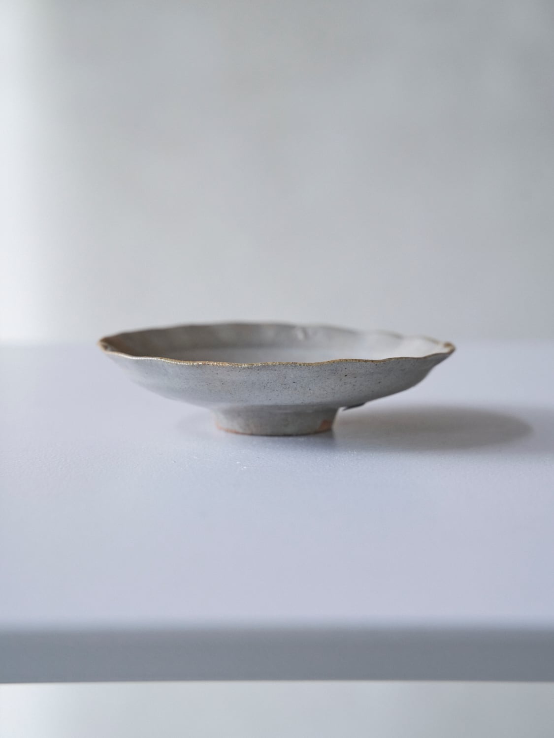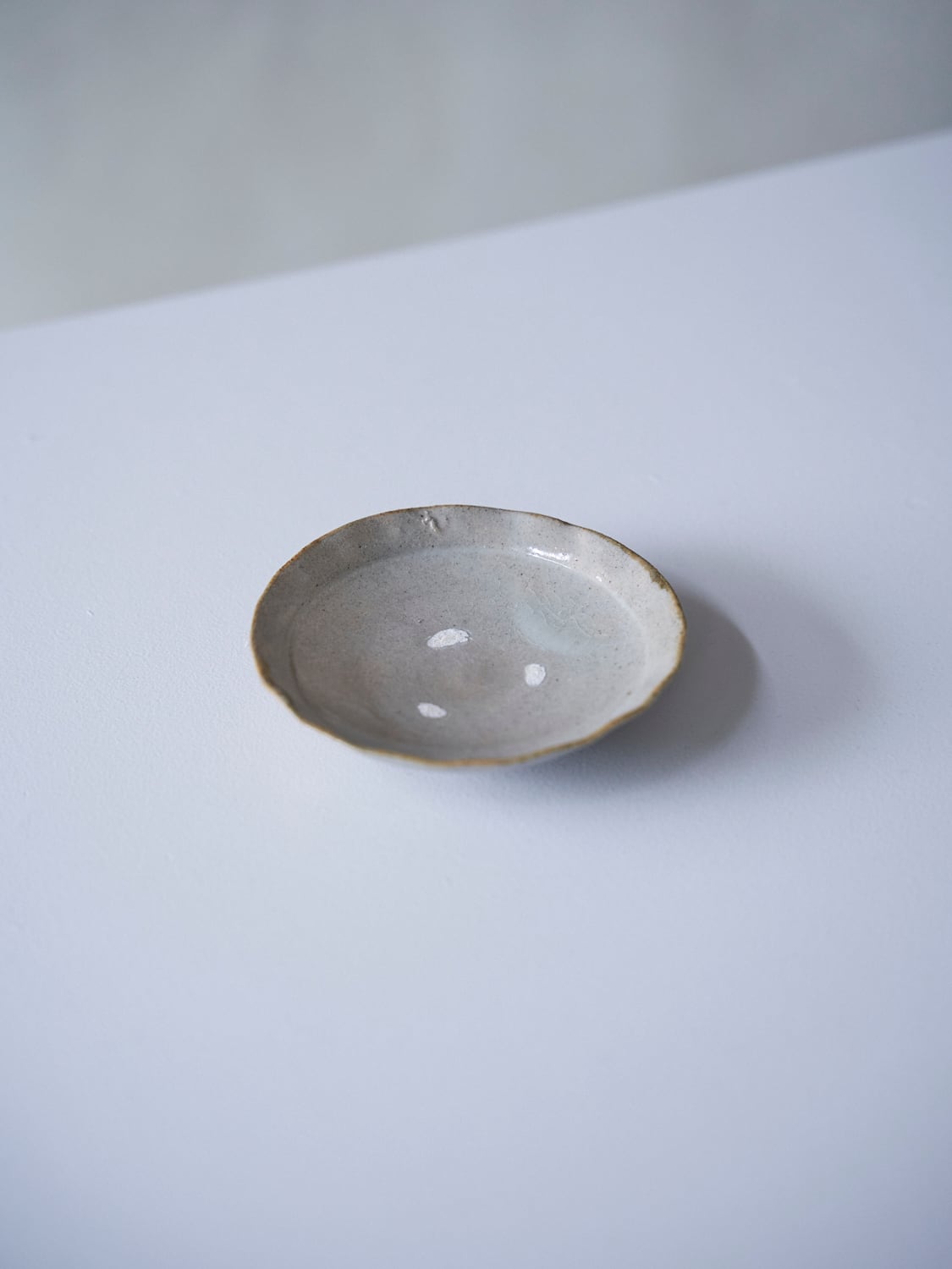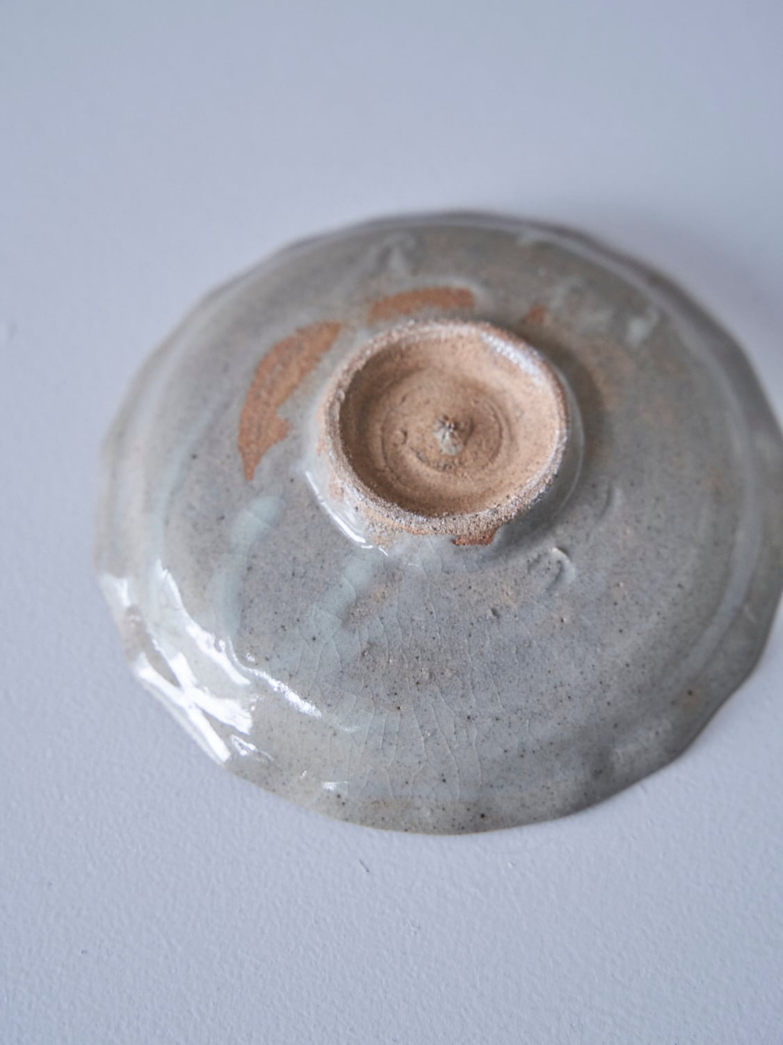 秋田菫による佐賀県唐津の土を使った陶器作品。古唐津のような素朴さをまとった佇まいのカップ。優しい形と色は「用の美」を感じさせてくれる。柔らかいグレーの色が美しい。裏の高台も見どころです。