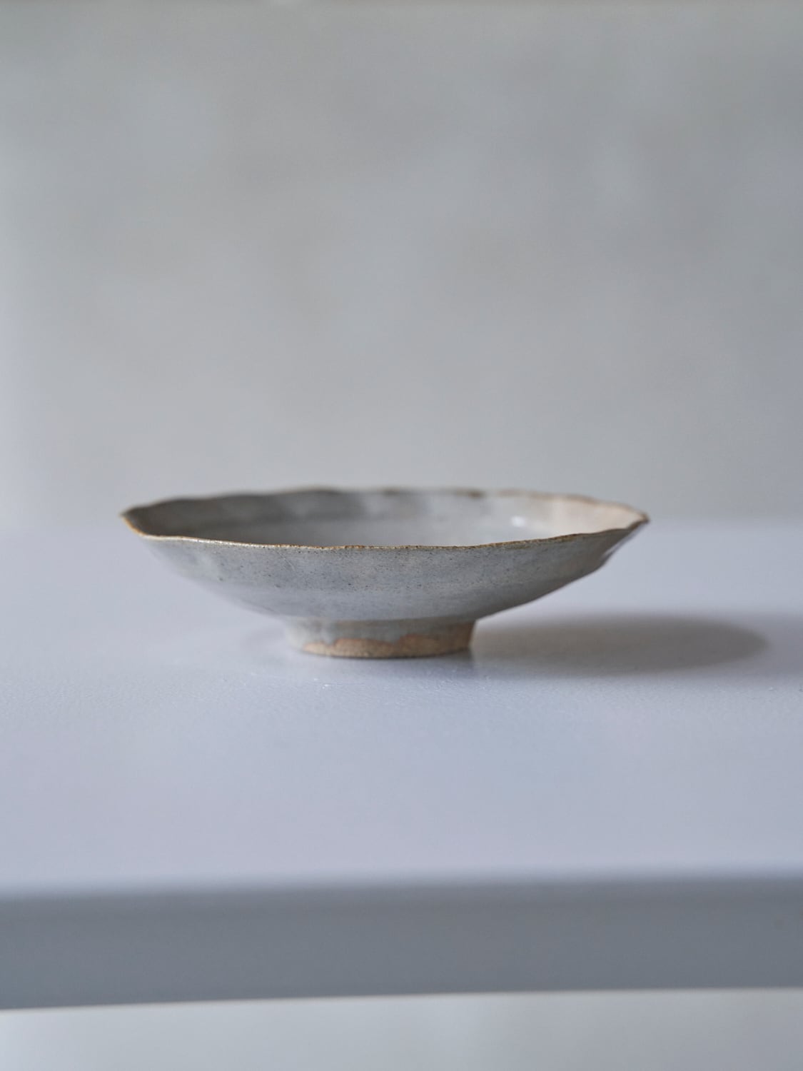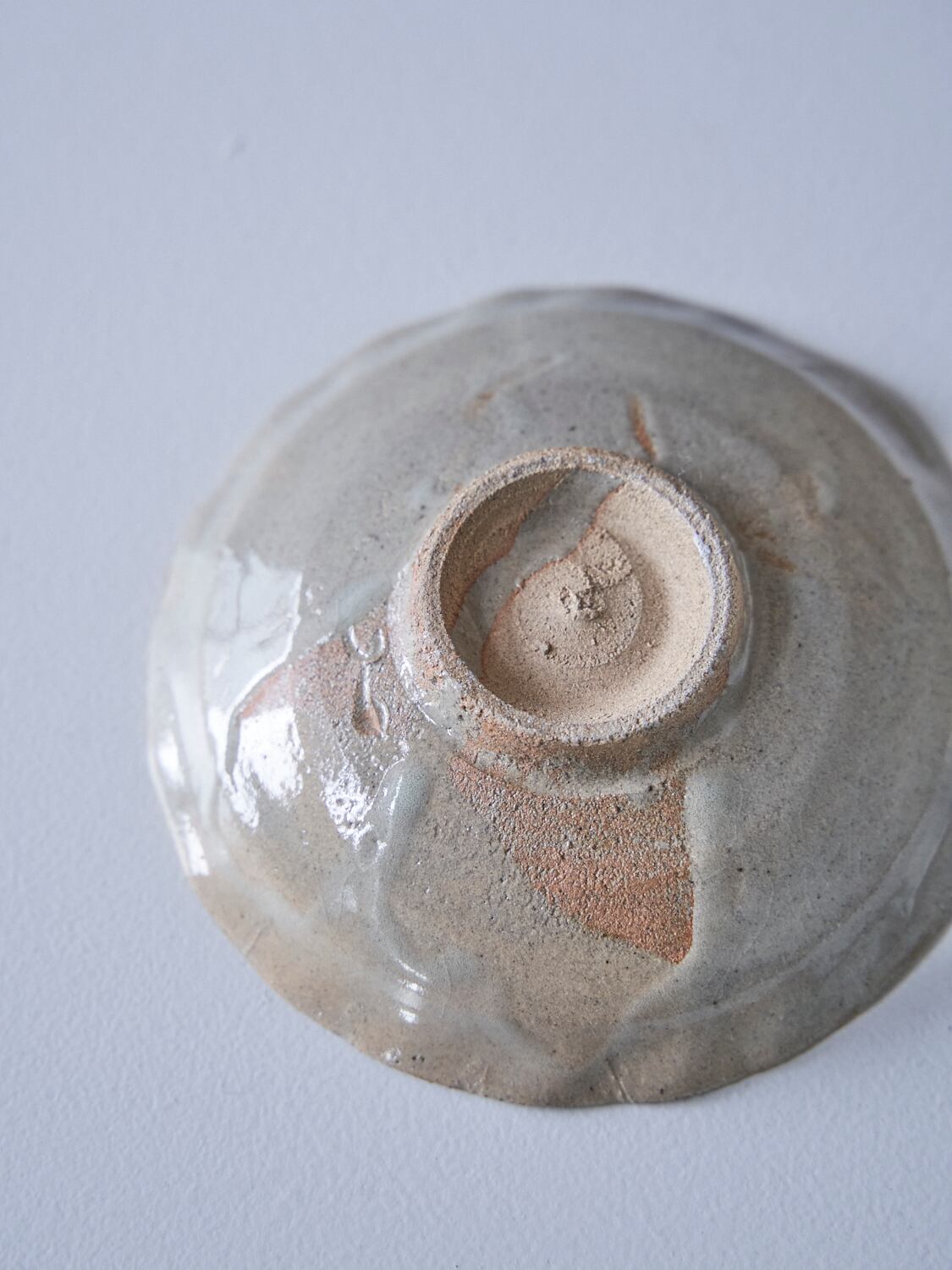秋田菫による佐賀県唐津の土を使った陶器作品。古唐津のような素朴さをまとった佇まいのカップ。優しい形と色は「用の美」を感じさせてくれる。柔らかいグレーの色が美しい。裏の高台も見どころです。