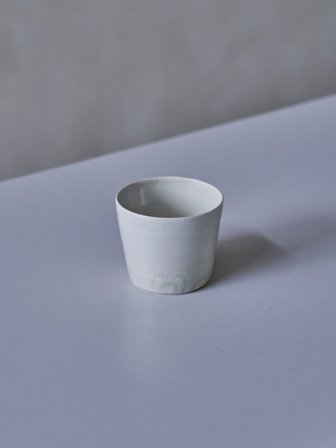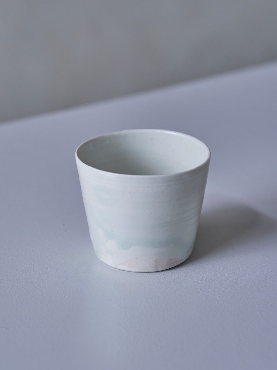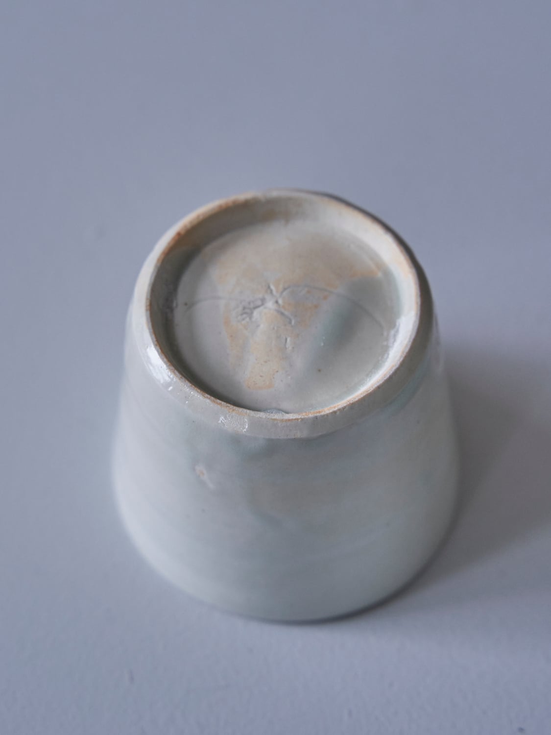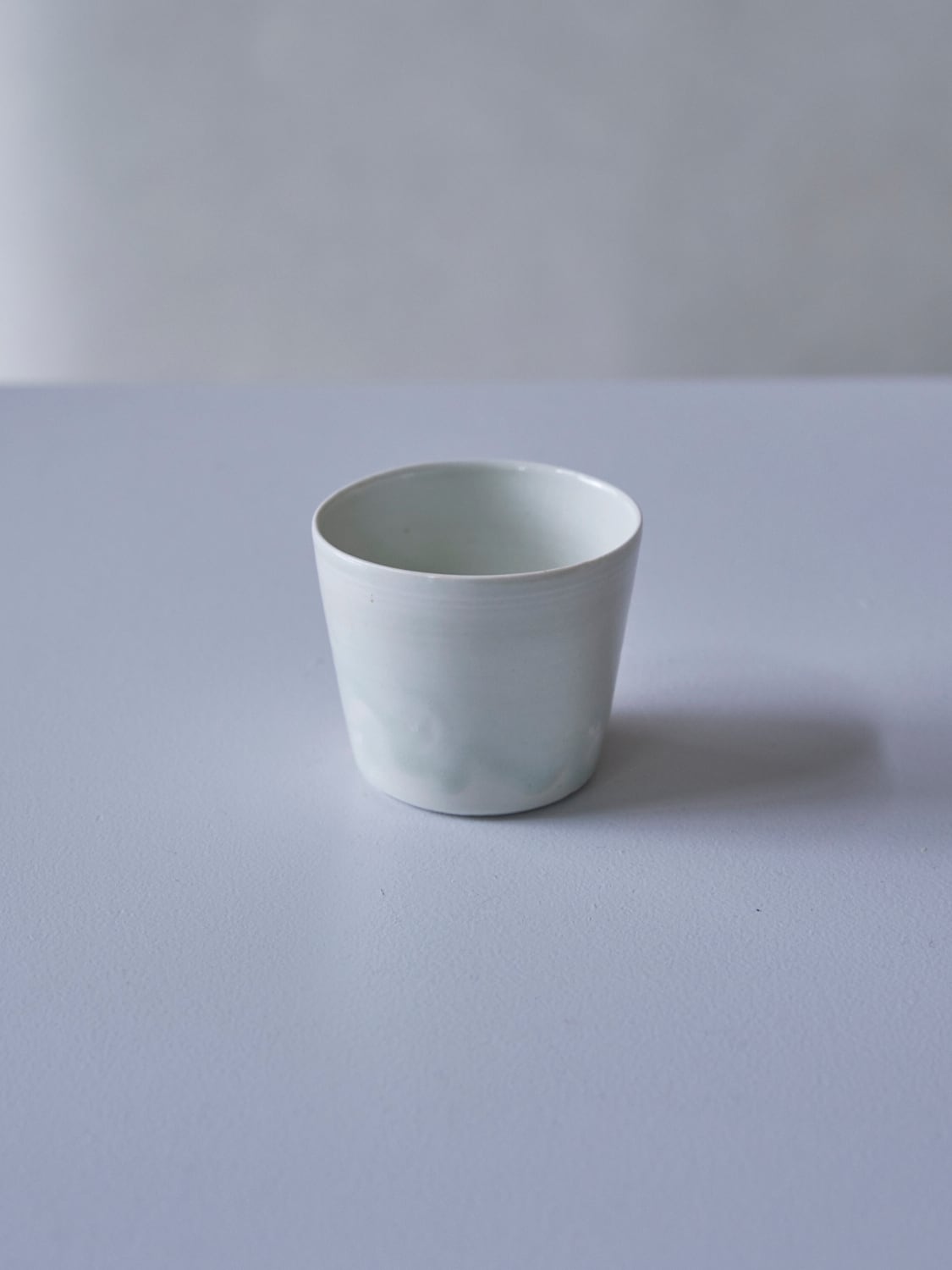 秋田菫による磁器作品。青みがかったガラス質な釉薬が美しい作品。お白湯やお茶を飲む日々のコップとしても、蕎麦猪口としても。 素材 : 磁器 サイズ : 約 Φ8cm × H 6.5cm 容量:130cc サイズは若干の誤差が生じます。またモニターの環境により実際の色と異なる見え方になる場合があります。ご理解の上ご購入ください。