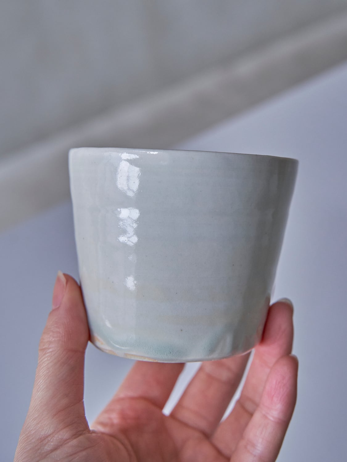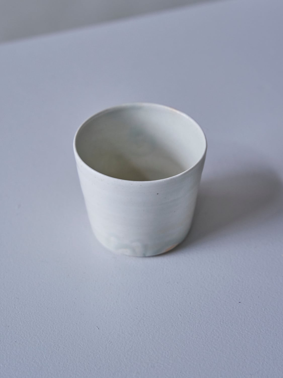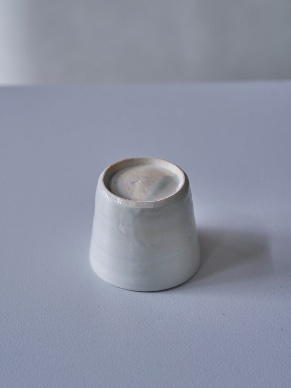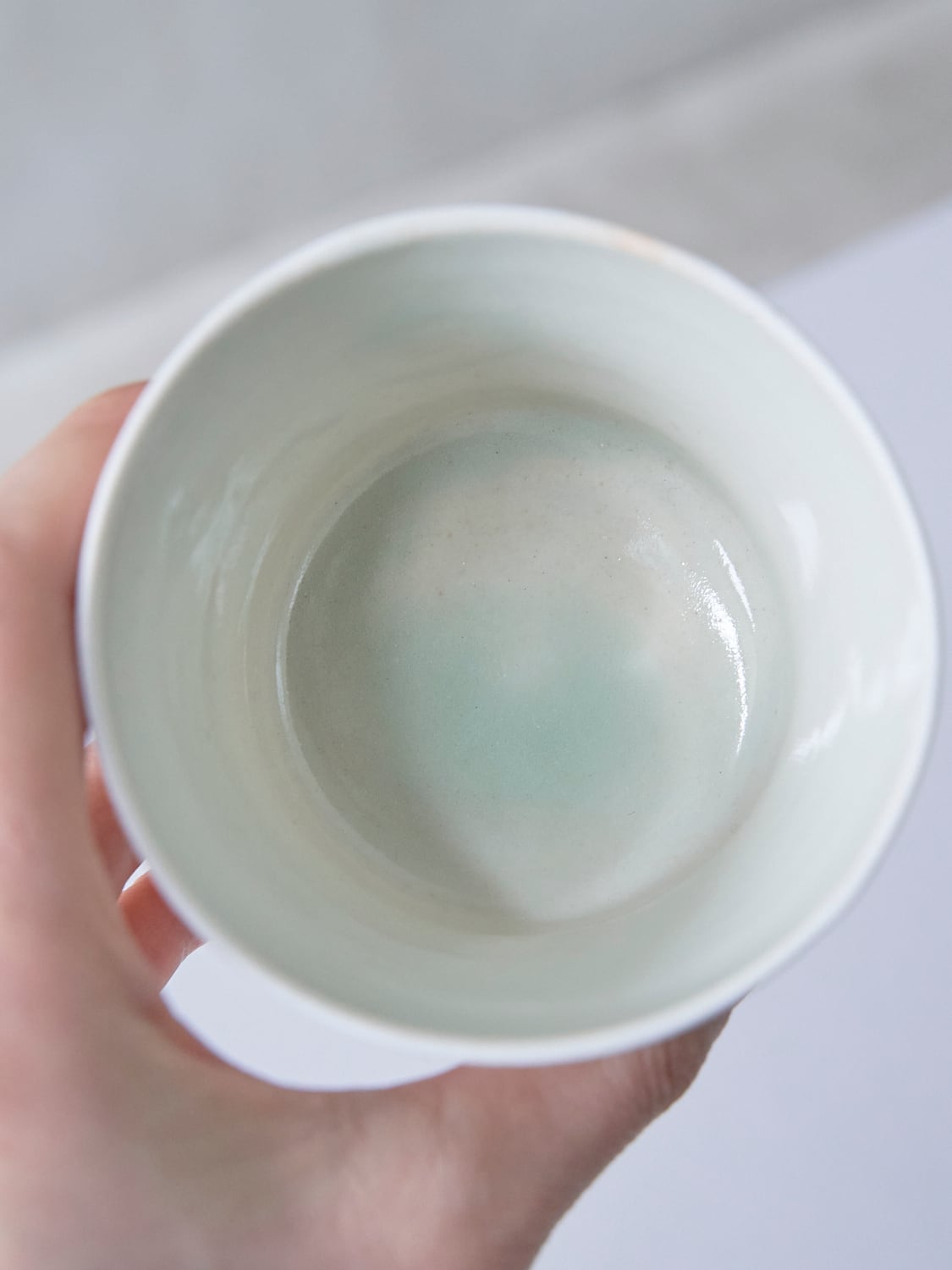 秋田菫による磁器作品。青みがかったガラス質な釉薬が美しい作品。お白湯やお茶を飲む日々のコップとしても、蕎麦猪口としても。 素材 : 磁器 サイズ : 約 Φ8cm × H 6.5cm 容量:130cc サイズは若干の誤差が生じます。またモニターの環境により実際の色と異なる見え方になる場合があります。ご理解の上ご購入ください。