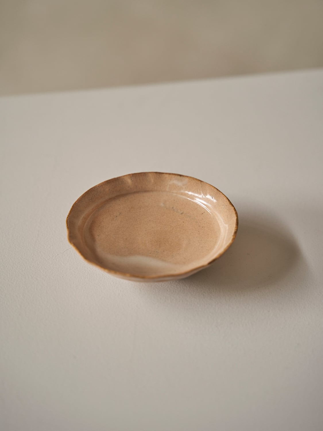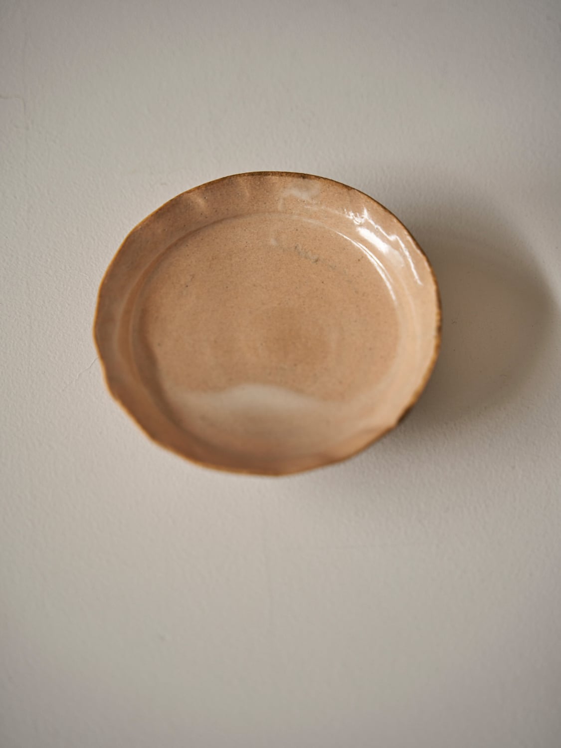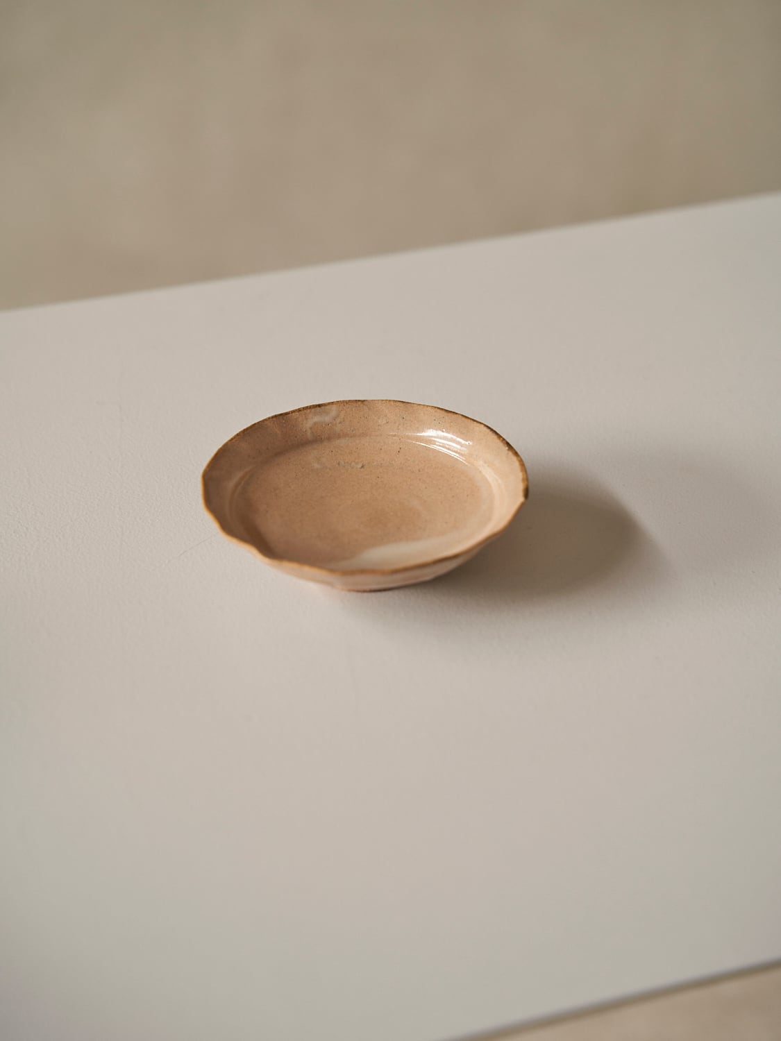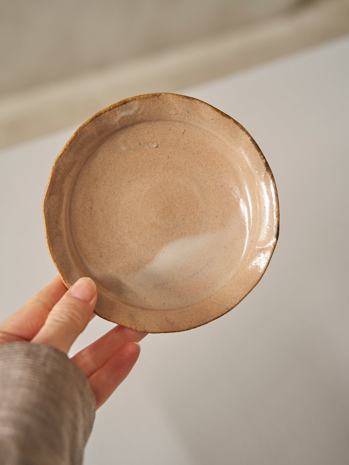 秋田菫による佐賀県唐津の土を使った陶器作品。古唐津のような素朴さをまとった佇まいのカップ。優しい形と色は「用の美」を感じさせてくれる。柔らかいベージュのような茶のような色が美しい。 素材 : 陶器 サイズ : 約 Φ 13cm × H 4cm サイズは若干の誤差が生じます。またモニターの環境により実際の色と異なる見え方になる場合があります。ご理解の上ご購入ください。
