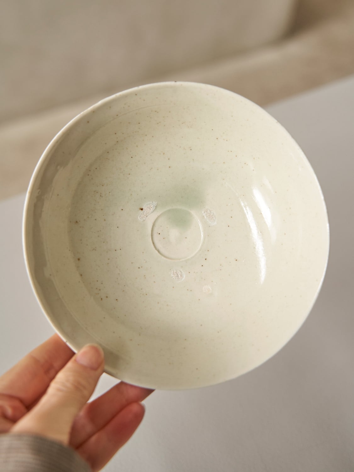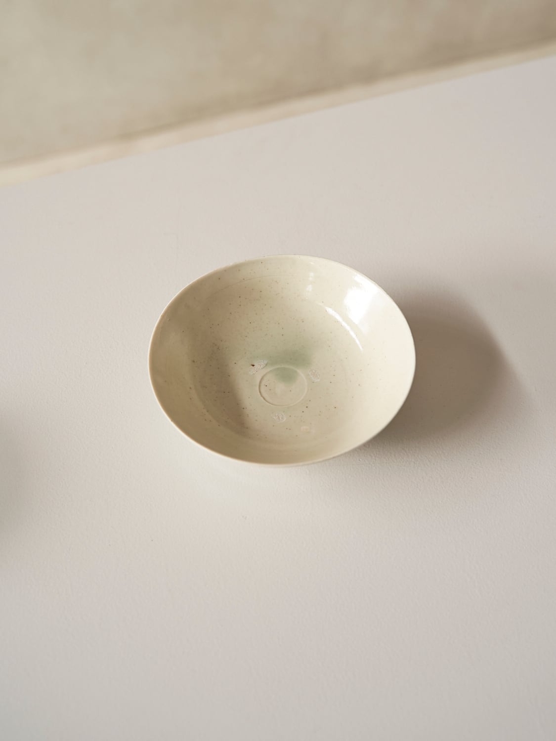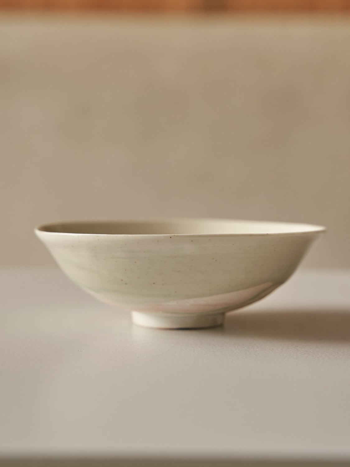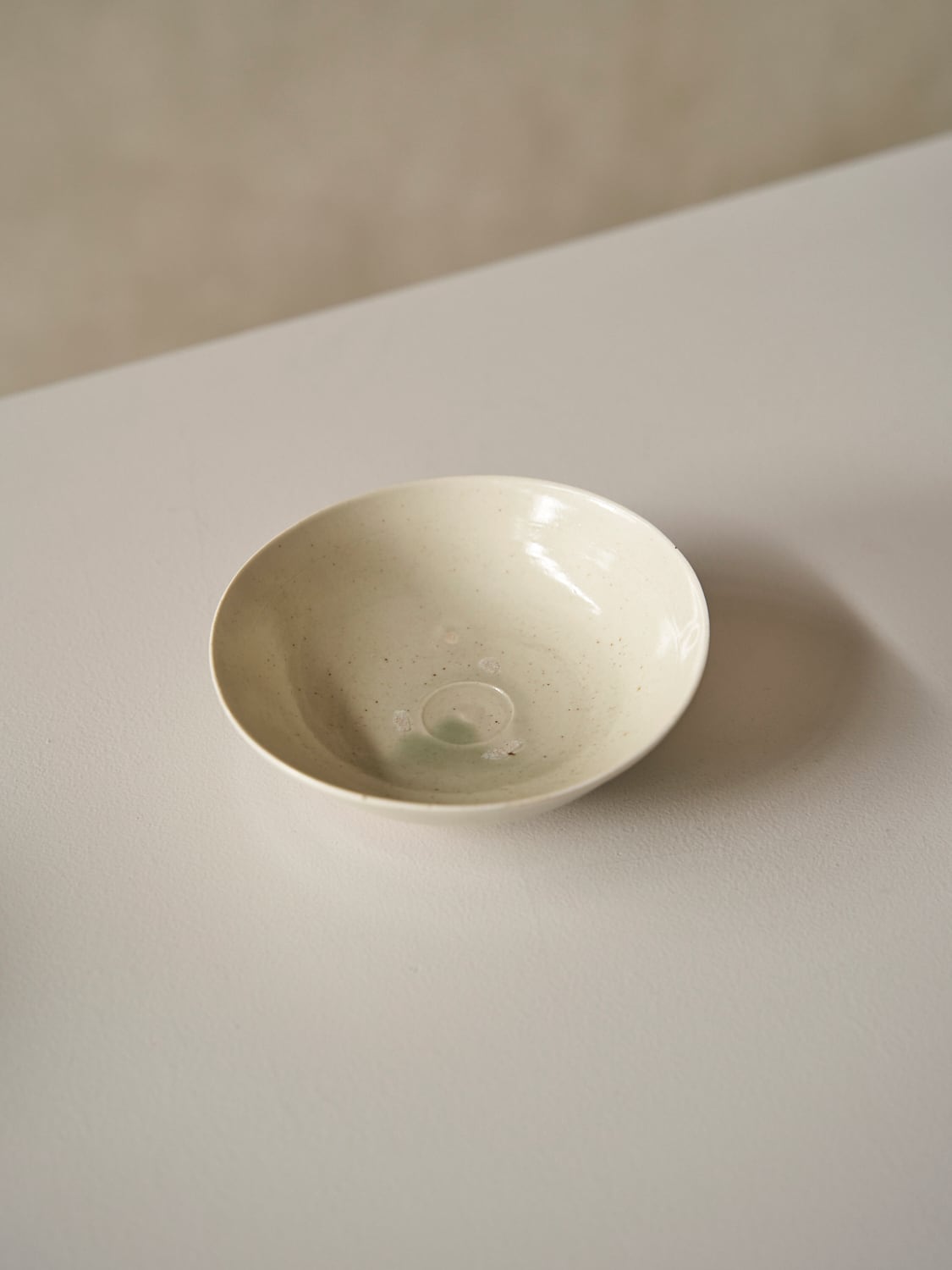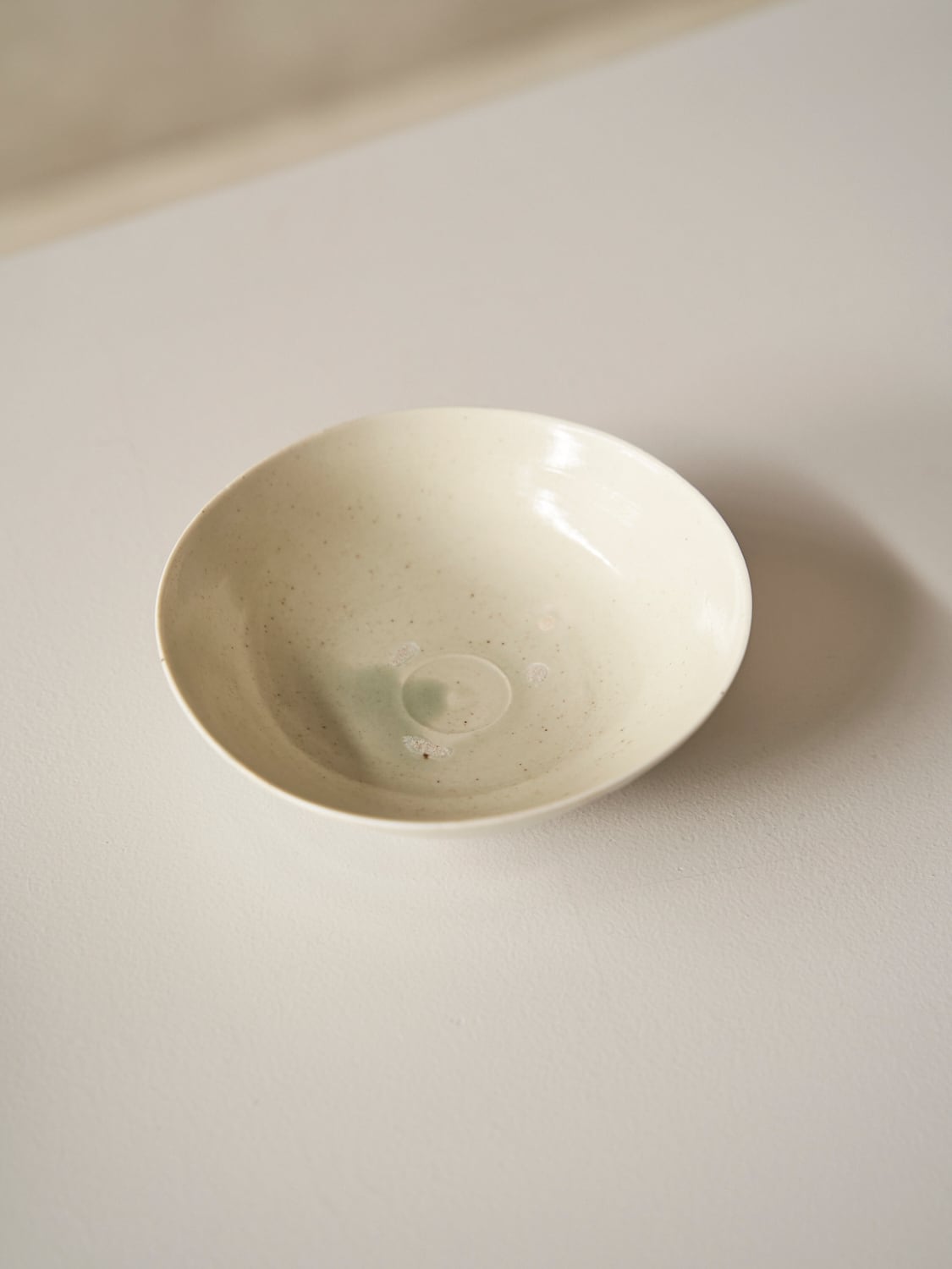 秋田菫による磁器作品。青みがかったガラス質な釉薬が美しい作品。深さがあるため横からの形もとても美しい作品。汁物や、サラダ、取り皿などにも使えます。