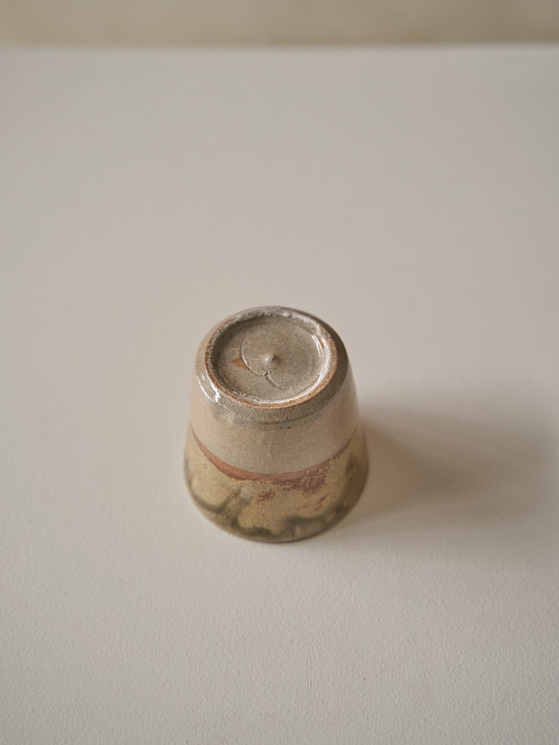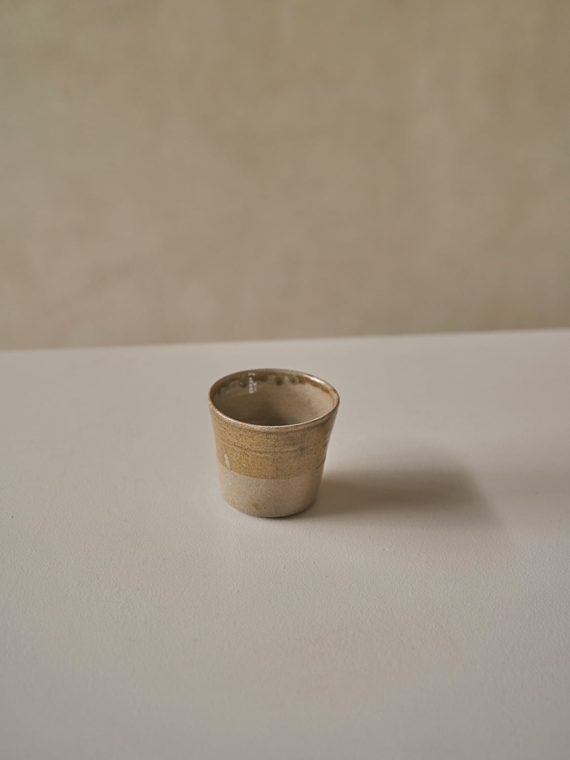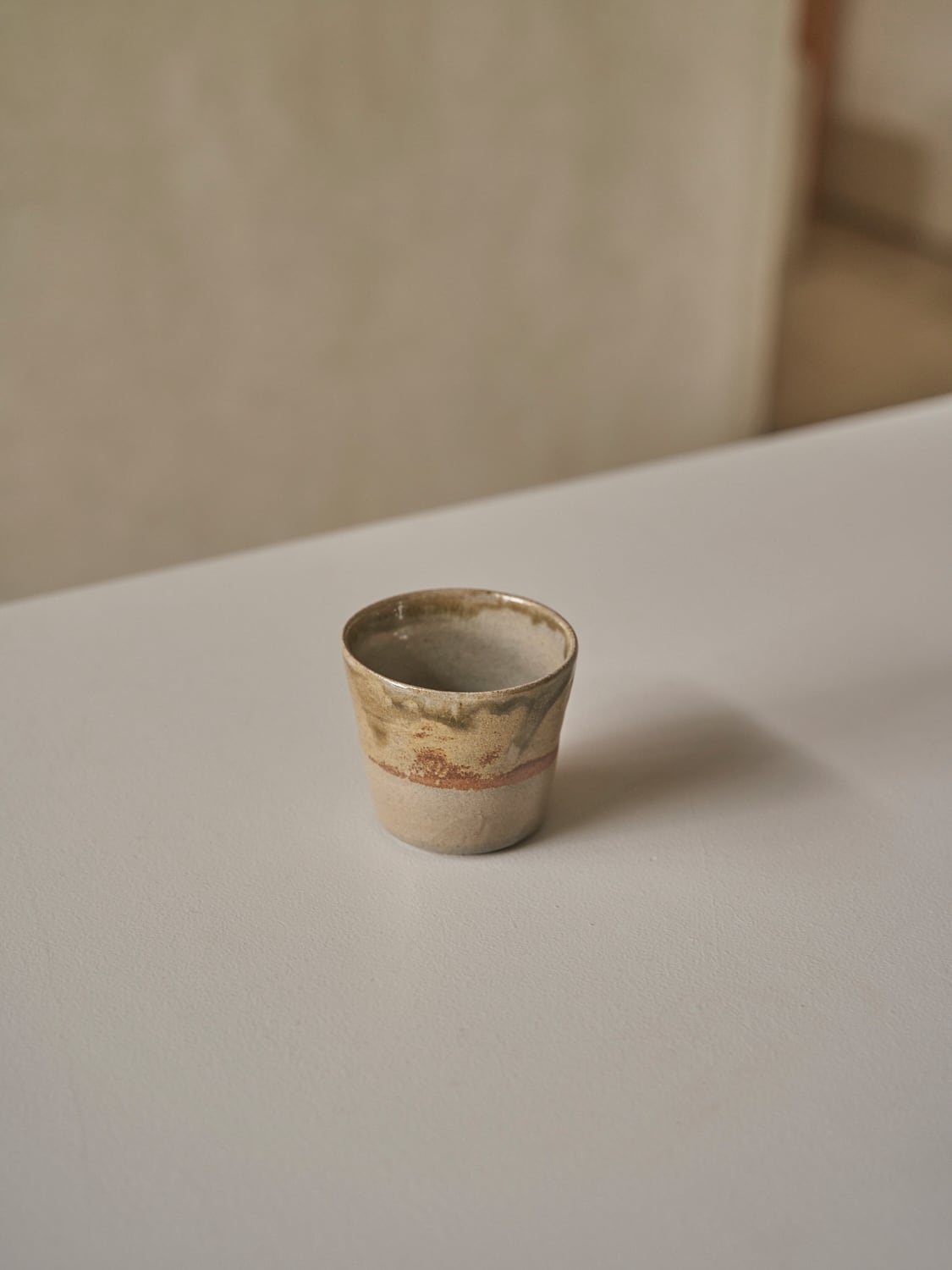 秋田菫による佐賀県唐津の土を使った陶器作品。古唐津のような素朴さをまとった佇まいのカップ。優しい形と色は「用の美」を感じさせてくれる。