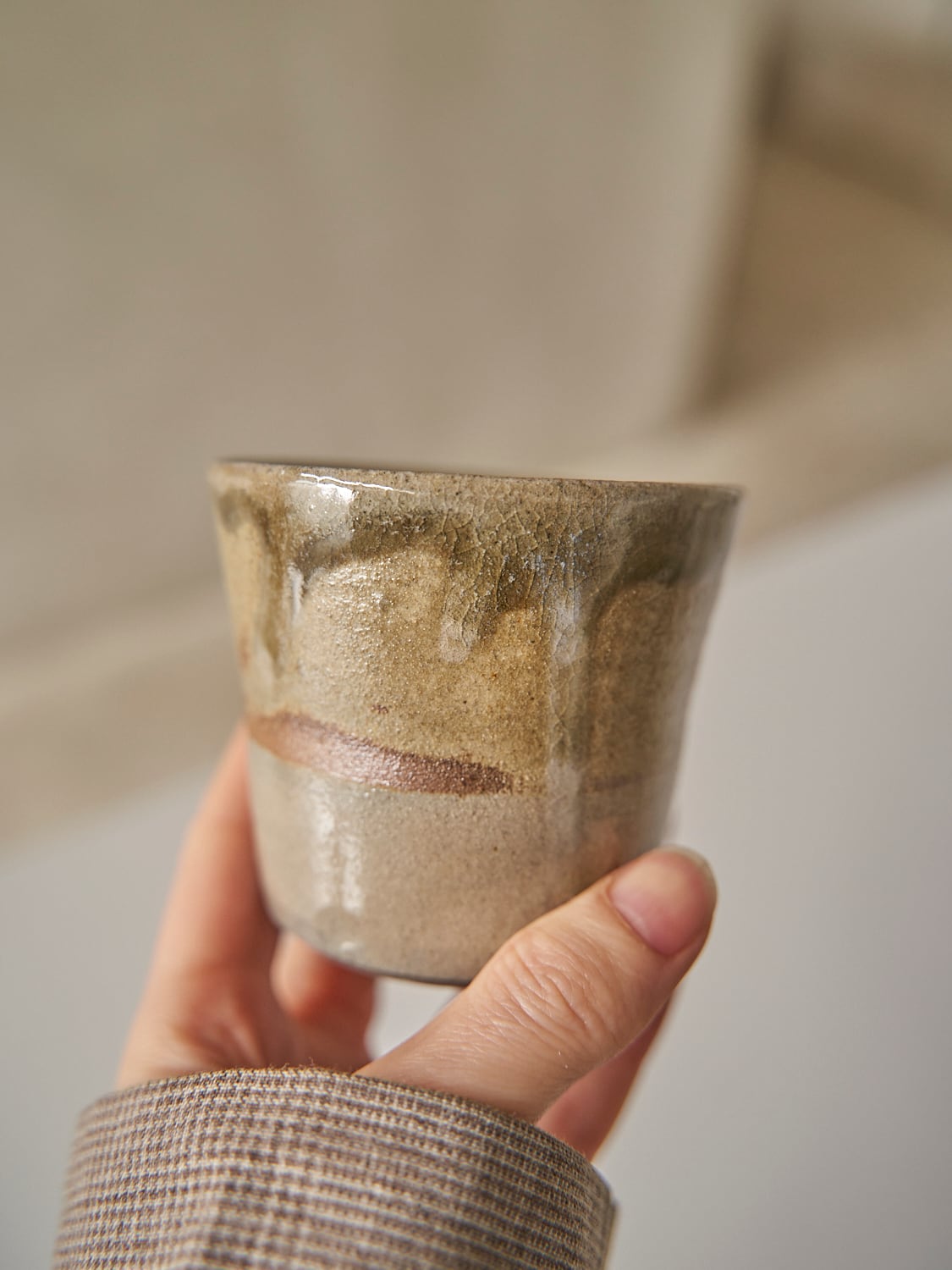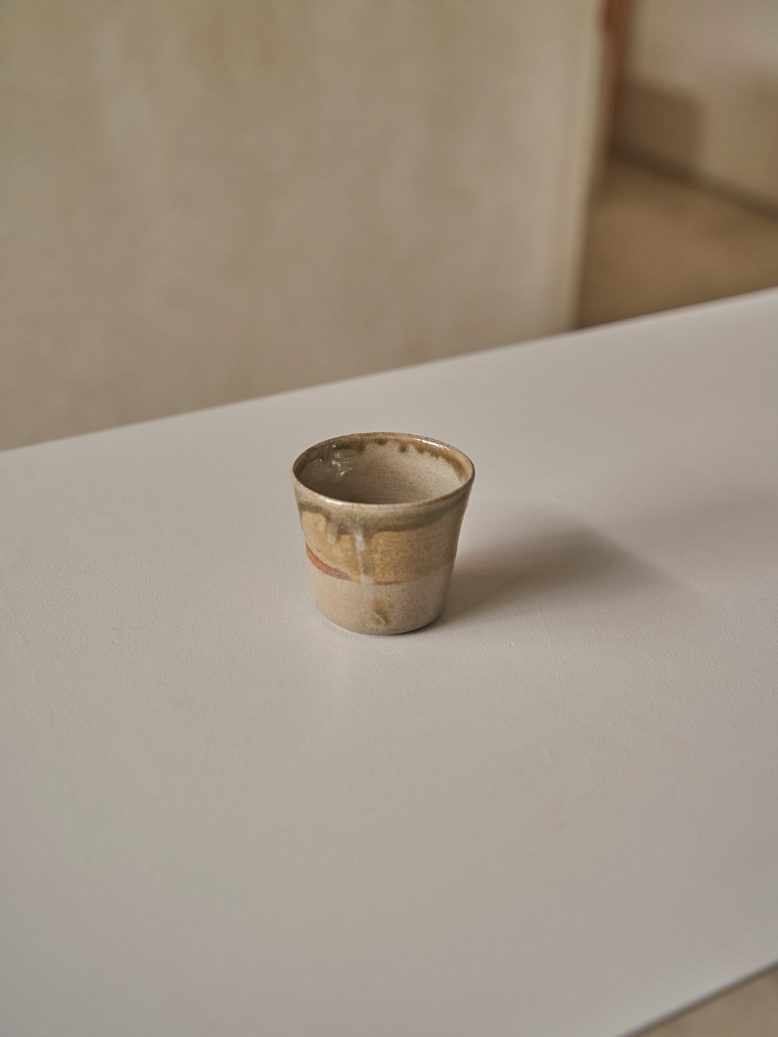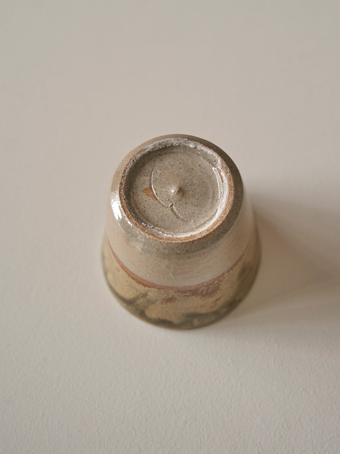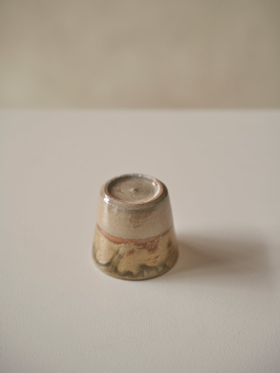 秋田菫による佐賀県唐津の土を使った陶器作品。古唐津のような素朴さをまとった佇まいのカップ。優しい形と色は「用の美」を感じさせてくれる。