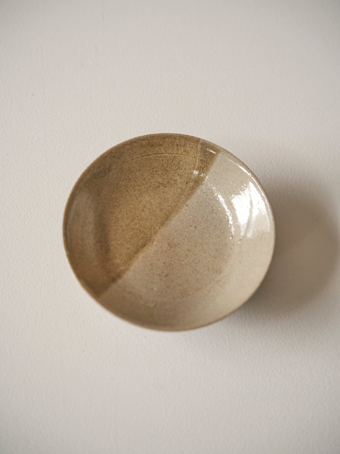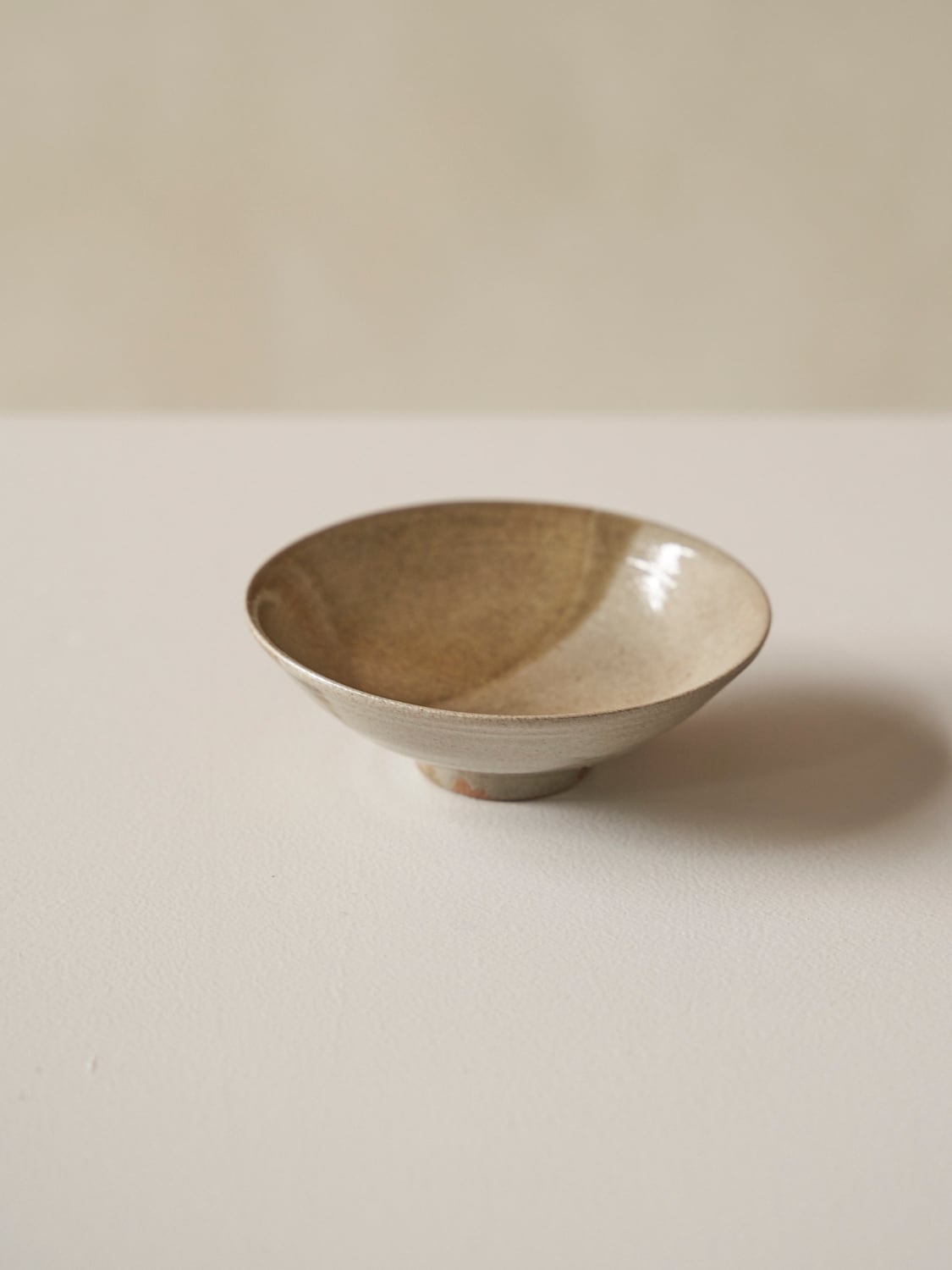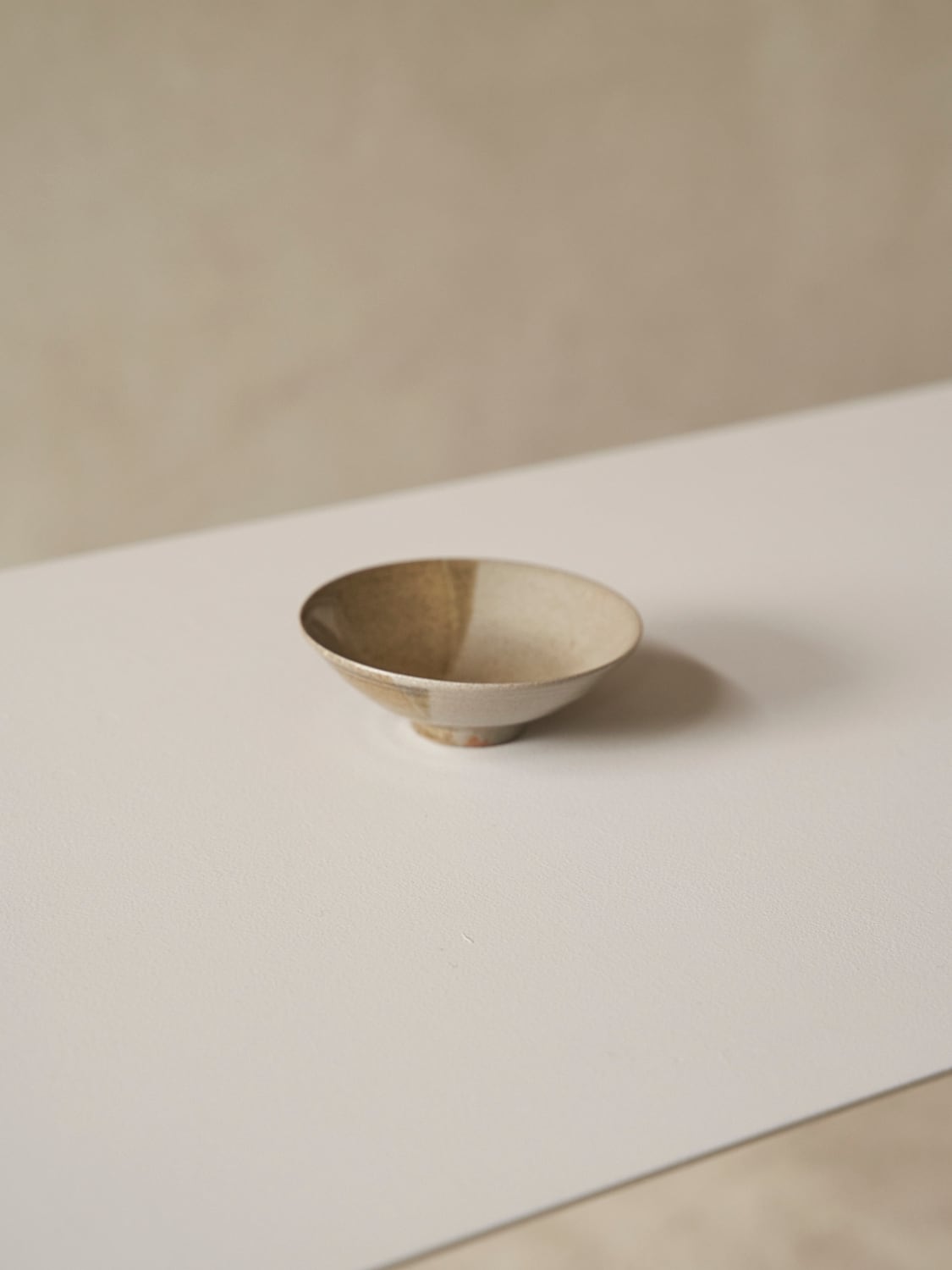秋田菫による佐賀県唐津の土を使った陶器作品。古唐津のような素朴さをまとった佇まいのカップ。優しい形と色は「用の美」を感じさせてくれる。
