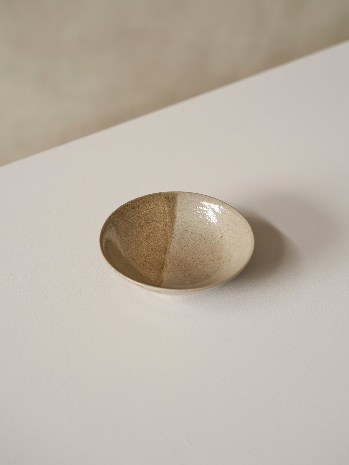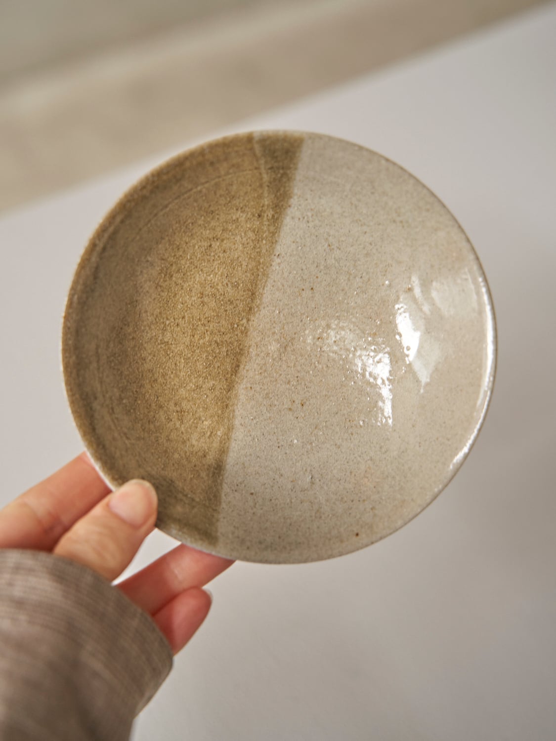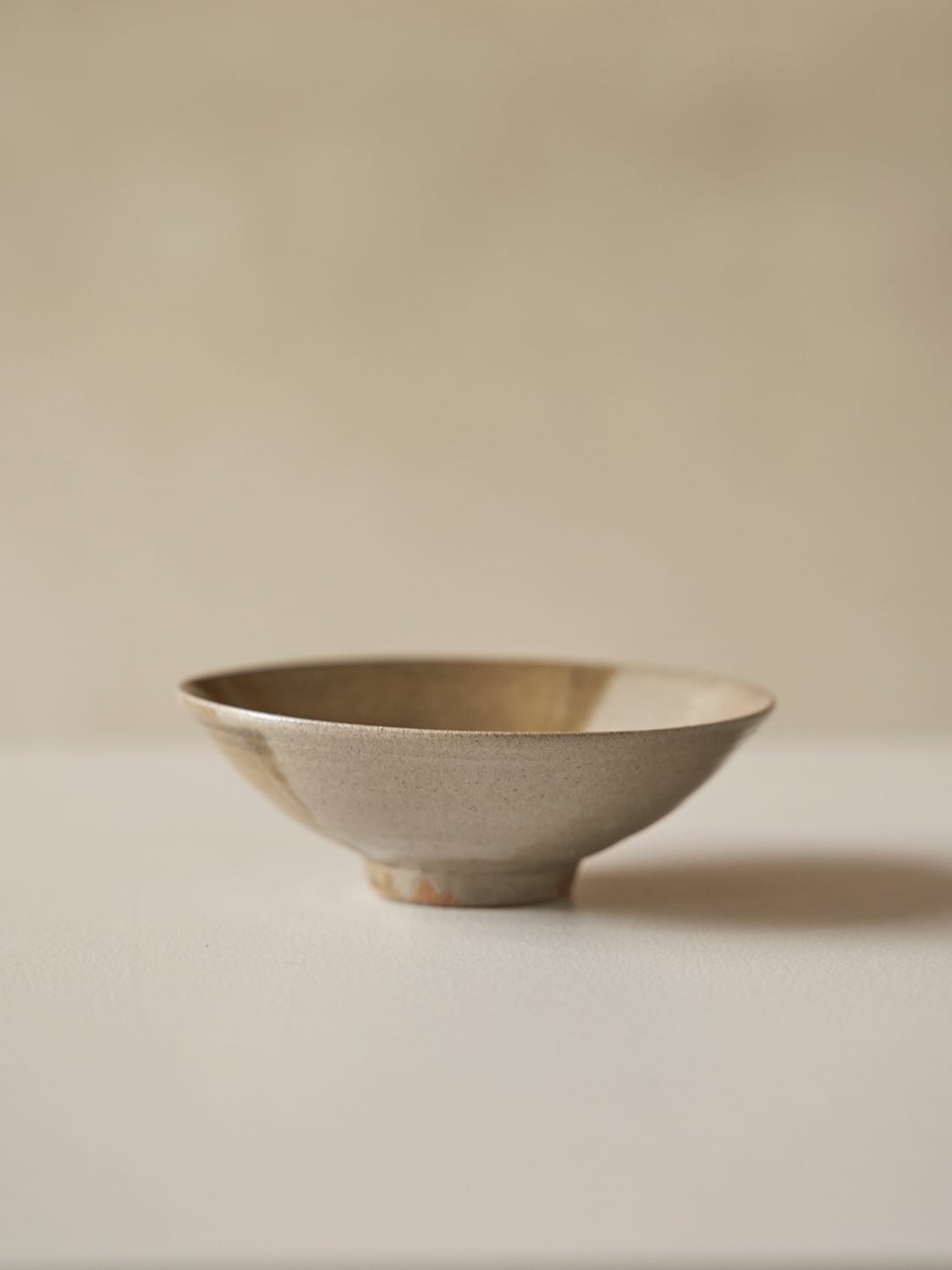 秋田菫による佐賀県唐津の土を使った陶器作品。古唐津のような素朴さをまとった佇まいのカップ。優しい形と色は「用の美」を感じさせてくれる。