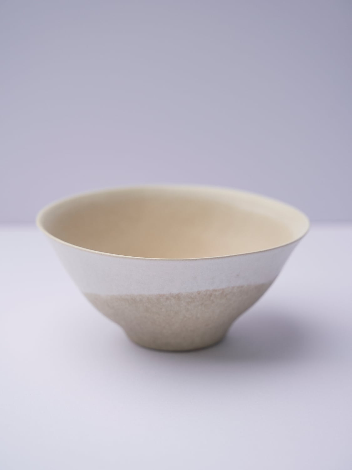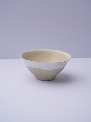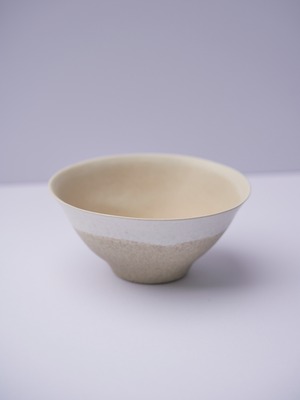 柔らかい形と色が特徴の辰巳 香(たつみ かおる)さんの作品。使っているととても穏やかな気持ちになります。少し大きいサイズの椀。軽めの麺類、丼物、ボウルとしてもとても使いやすいサイズです。高台に向けて窄まっていく形状が美しい作品。