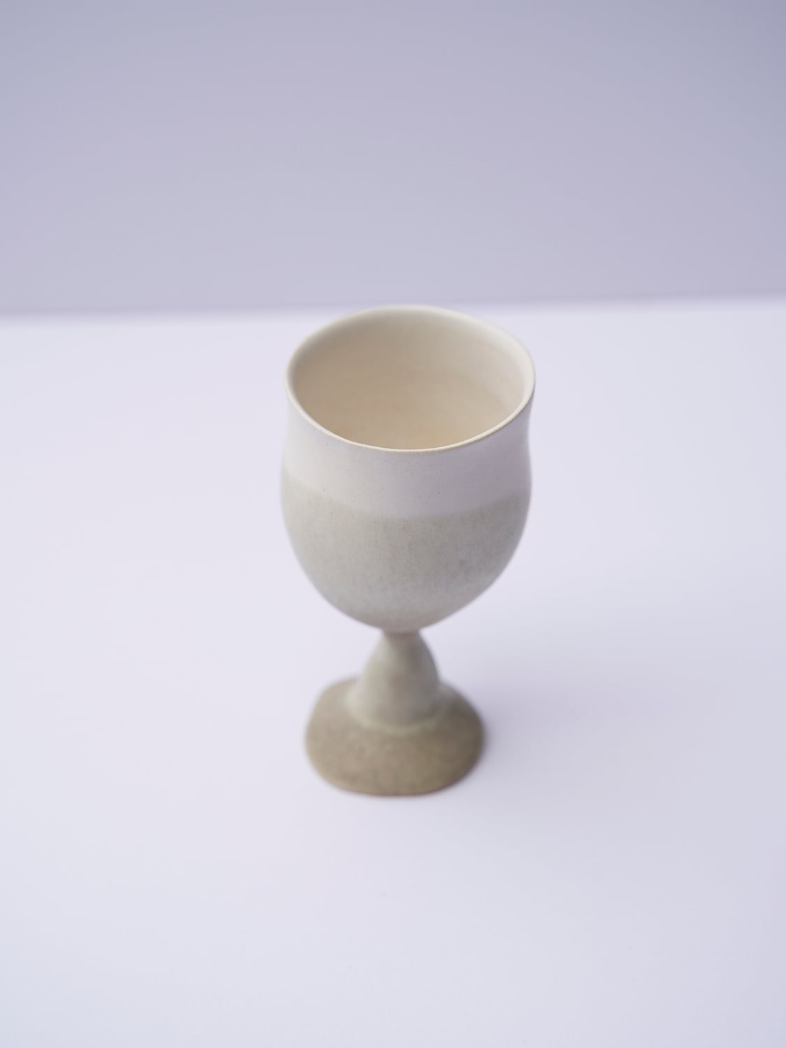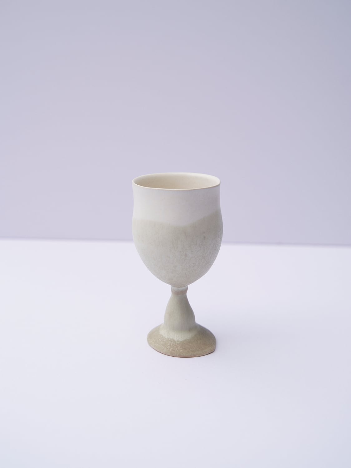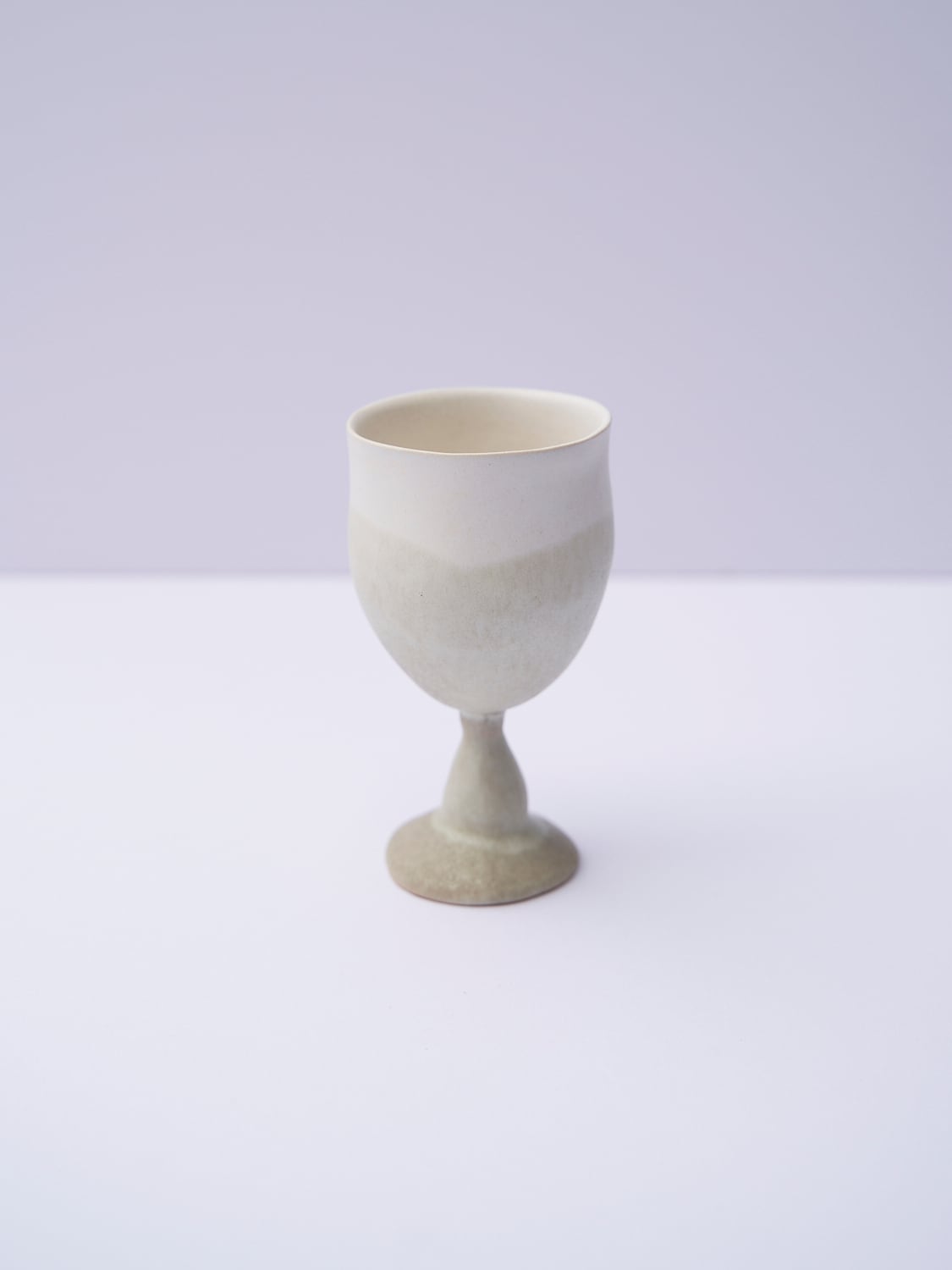 柔らかい形と色が特徴の辰巳 香(たつみ かおる)さんの作品。使っているととても穏やかな気持ちになります。ワイングラスのようなゴブレット。首を傾げているような形がとても可愛い作品です。お酒や、ジュース、に。特別な時間になること間違いなしです。