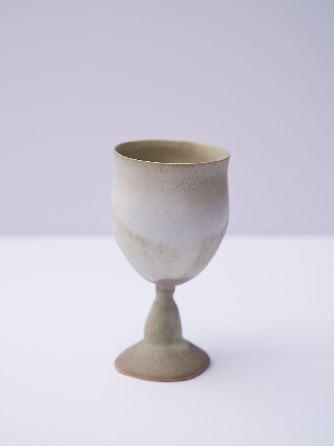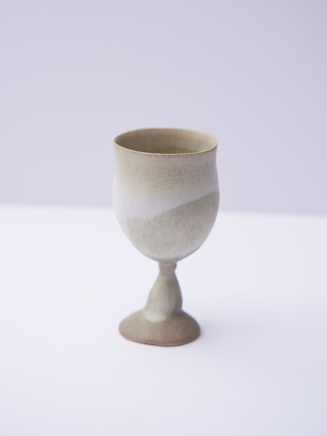 柔らかい形と色が特徴の辰巳 香(たつみ かおる)さんの作品。使っているととても穏やかな気持ちになります。ワイングラスのようなゴブレット。首を傾げているような形がとても可愛い作品です。お酒や、ジュース、に。特別な時間になること間違いなしです。