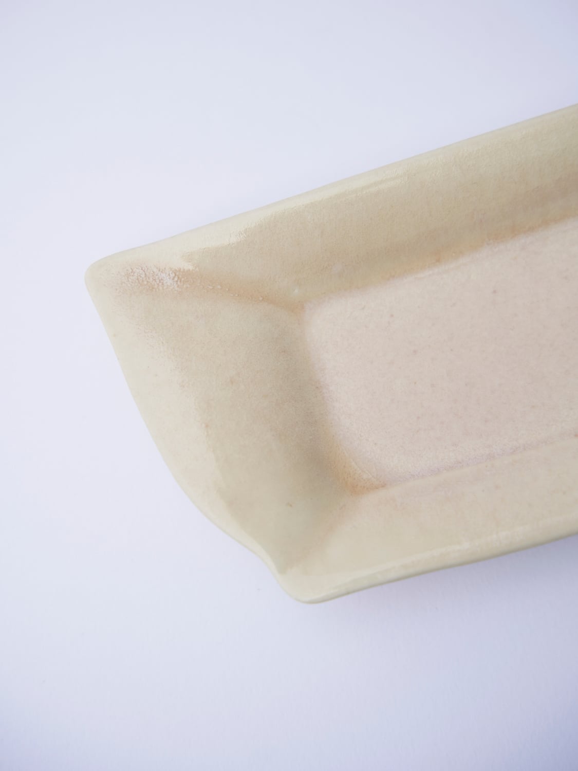 柔らかい形と色が特徴の辰巳 香(たつみ かおる)さんの作品。使っているととても穏やかな気持ちになります。角皿は辰巳さんの新作です。内側にうっすら見える格子柄もとても可愛い作品です。