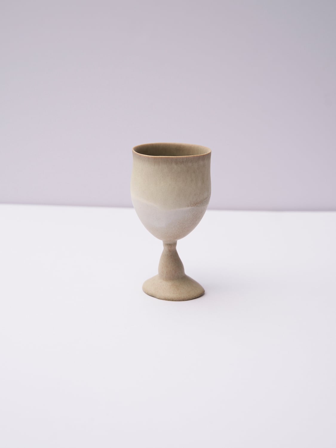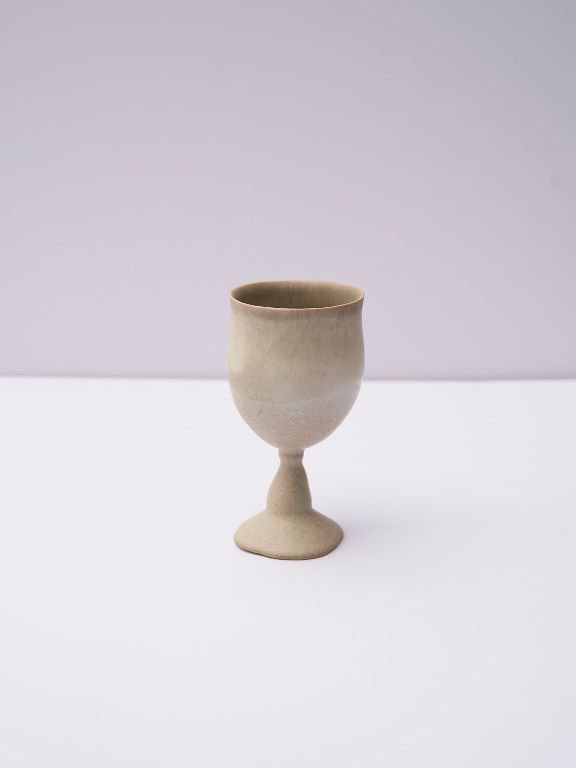 柔らかい形と色が特徴の辰巳 香(たつみ かおる)さんの作品。使っているととても穏やかな気持ちになります。ワイングラスのようなゴブレット。首を傾げているような形がとても可愛い作品です。お酒や、ジュース、に。特別な時間になること間違いなしです。