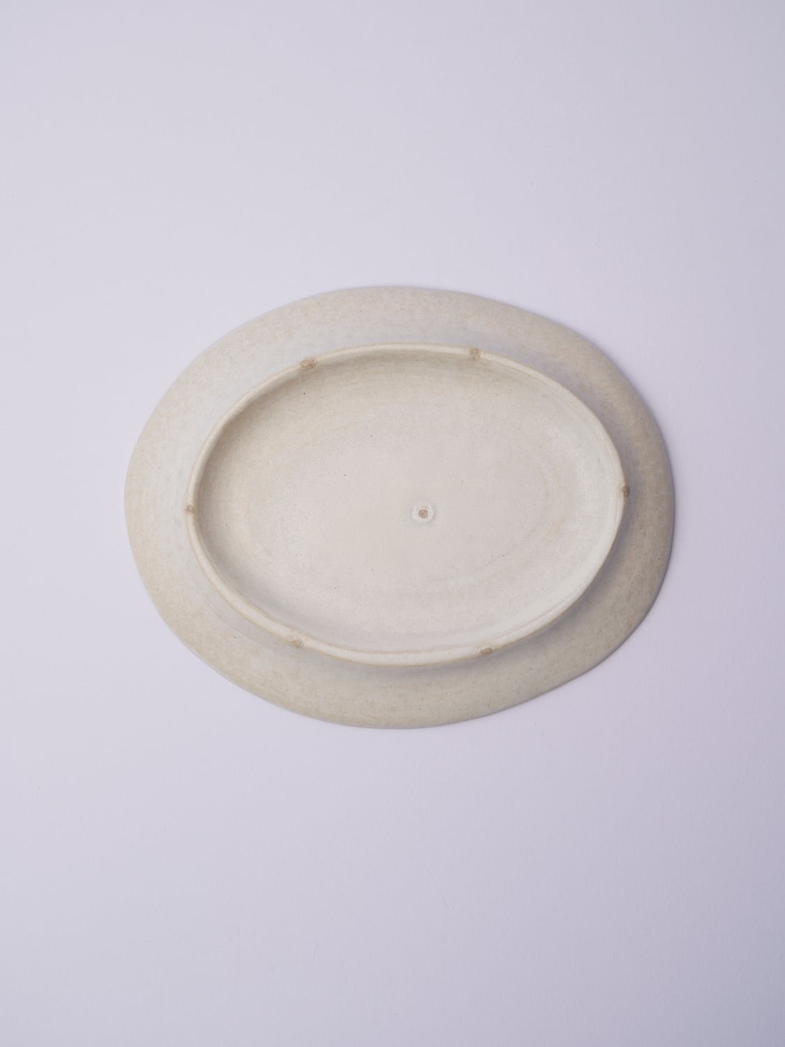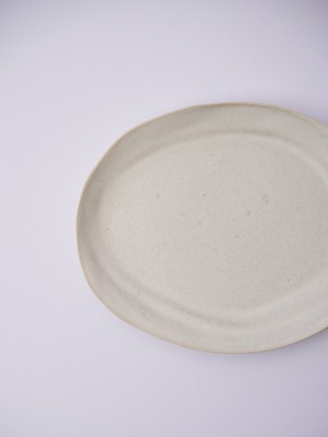 柔らかい形と色が特徴の辰巳 香(たつみ かおる)さんの作品。使っているととても穏やかな気持ちになります。小さめのオーバル皿はケーキ皿や、一品料理、取り皿にも大活躍です。