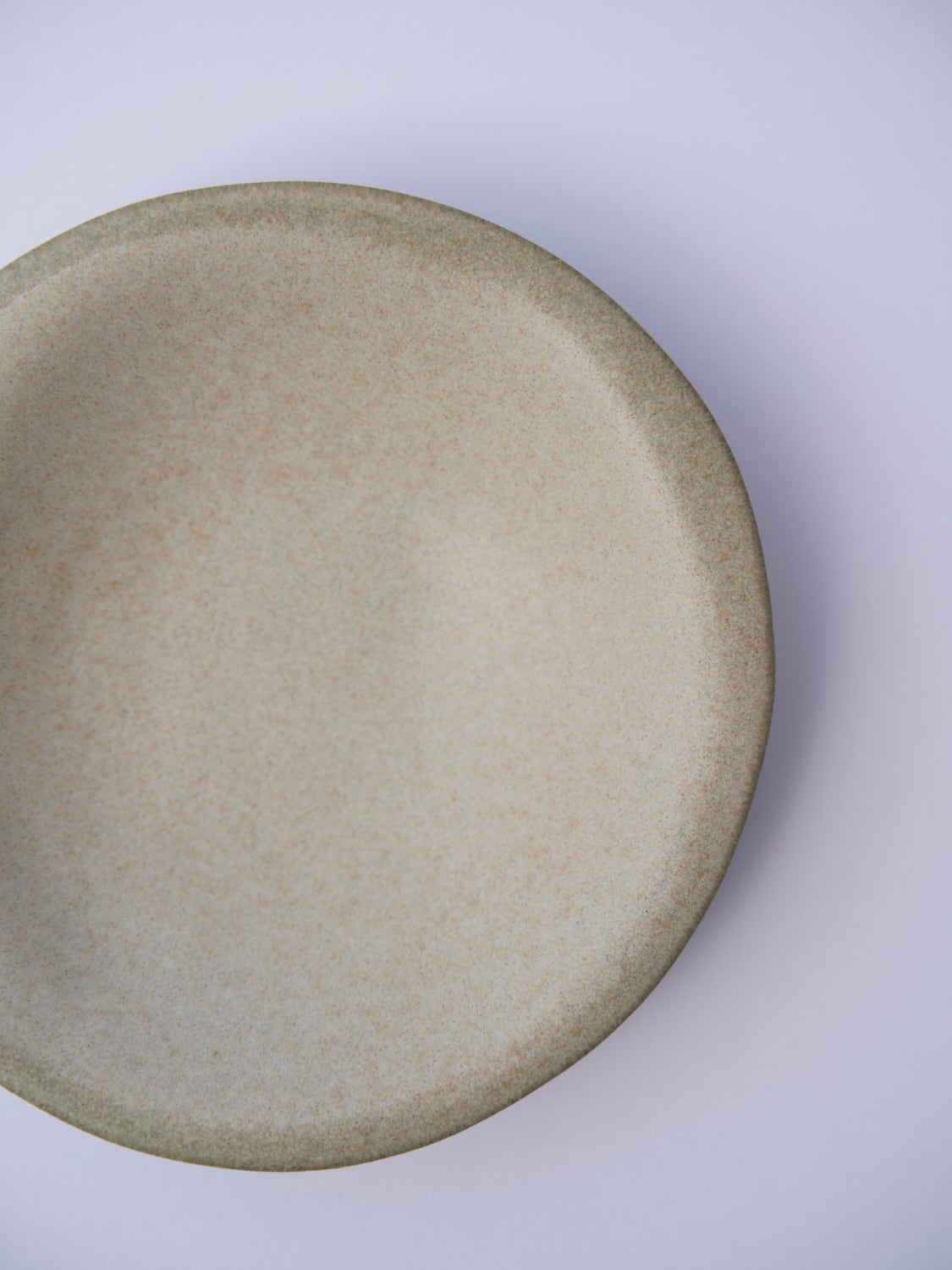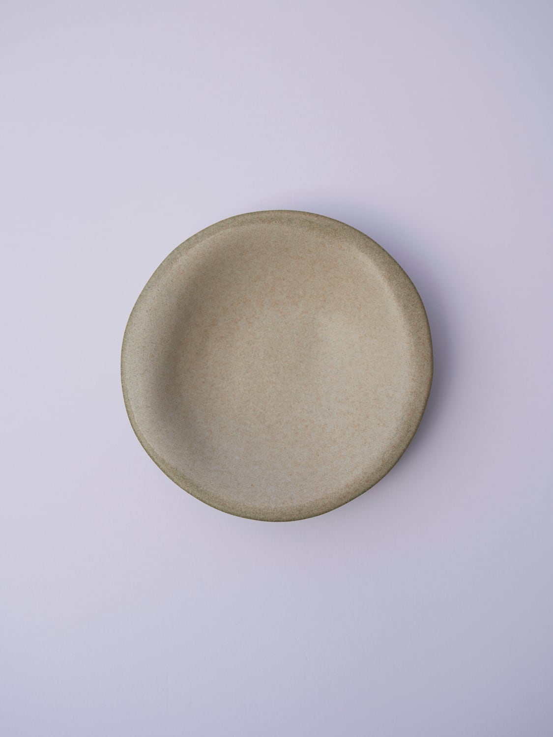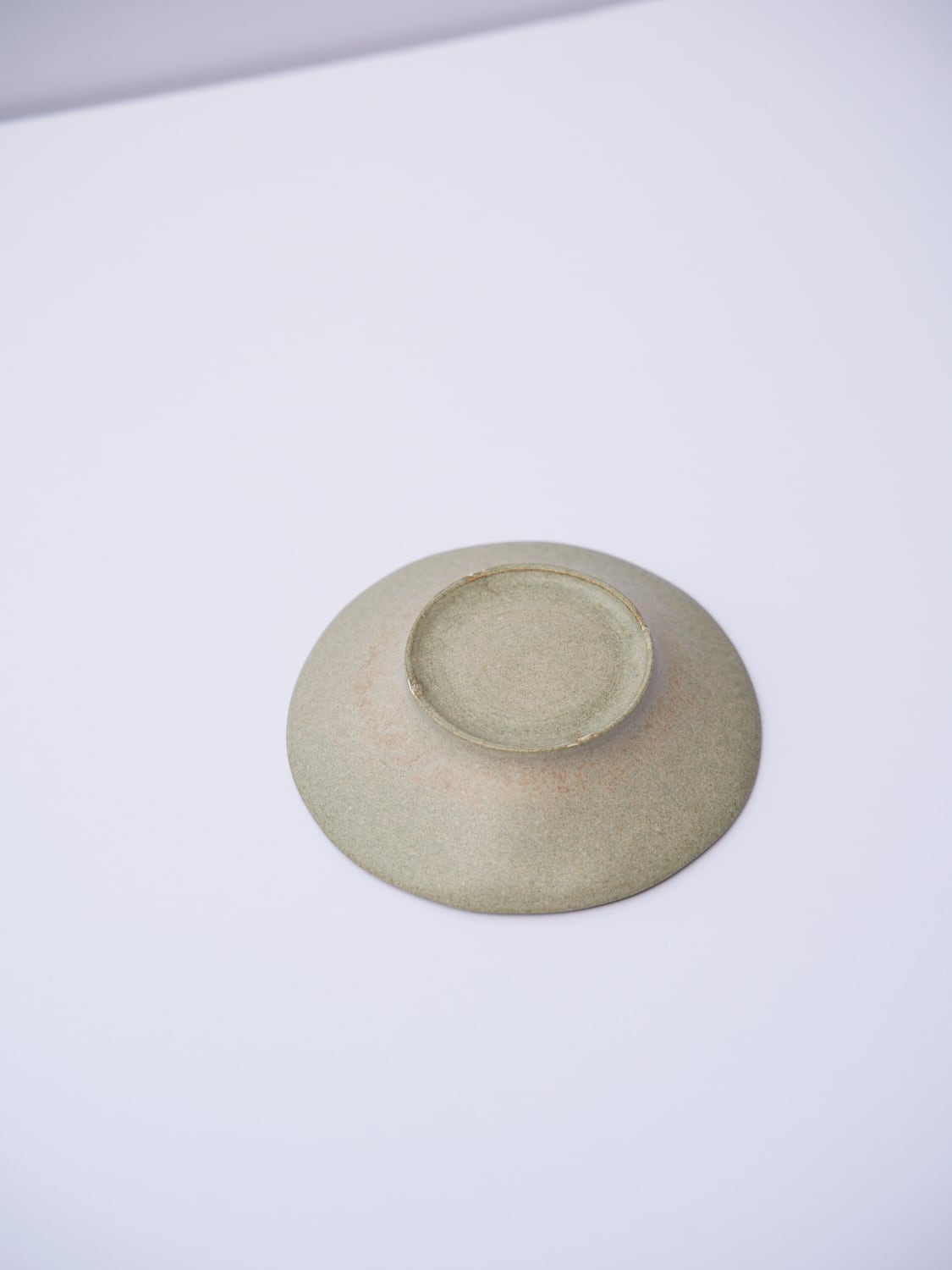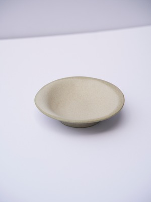 柔らかい形と色が特徴の辰巳 香(たつみ かおる)さんの作品。使っているととても穏やかな気持ちになります。小さめで深さのあるお皿はデザートや、取り皿、お惣菜などの一品物にも◎