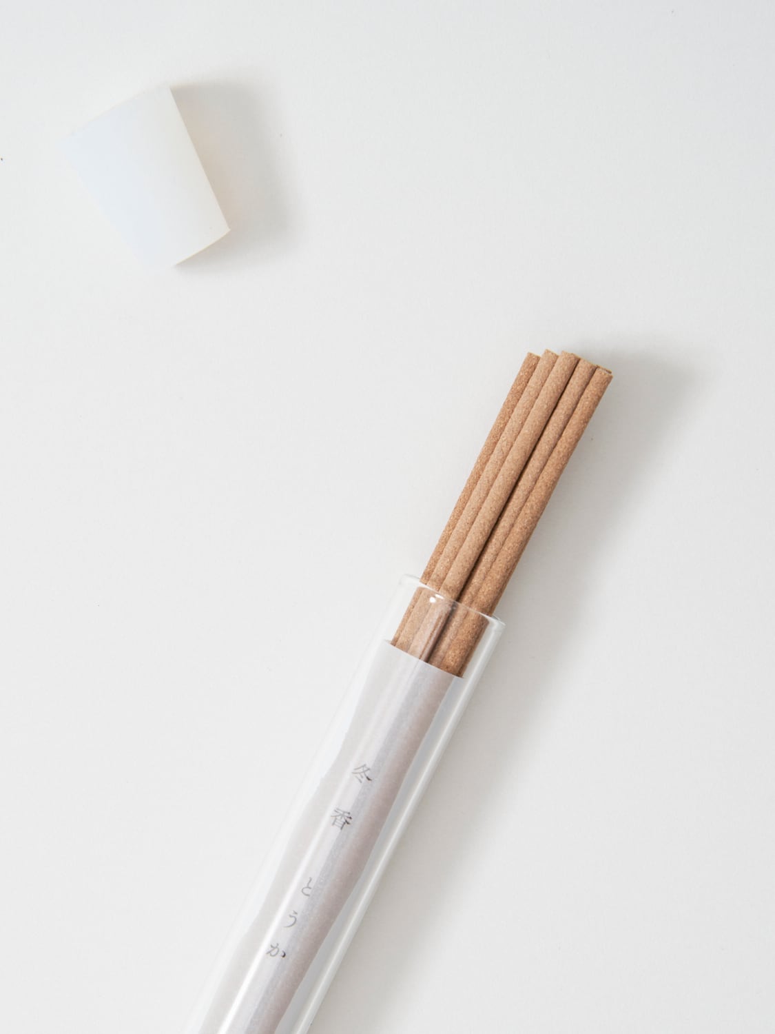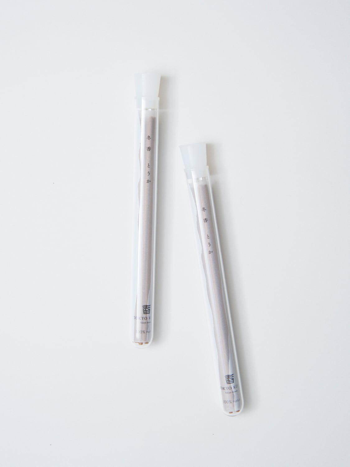 冬の香りをテーマに、どこか甘く洗礼されるような香りに仕立てています。ミルラとフランキンセンスの二種類のお香が7本ずつ入っています。
