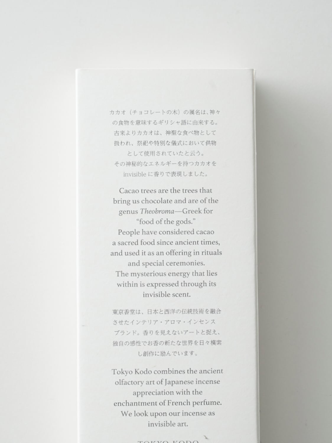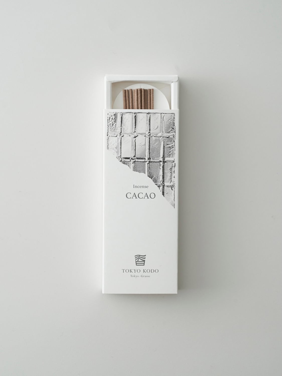 チョコレートをテーマに作られたCACAOのお香。カカオだけではなく、木の香りやドライフルーツの甘い香り、ミルク感など様々な表情を出す。プレゼントにも最適です。